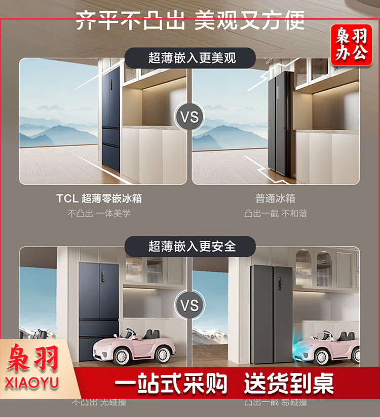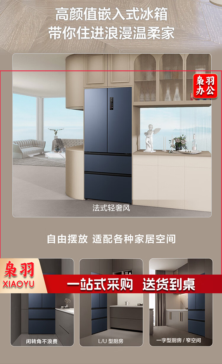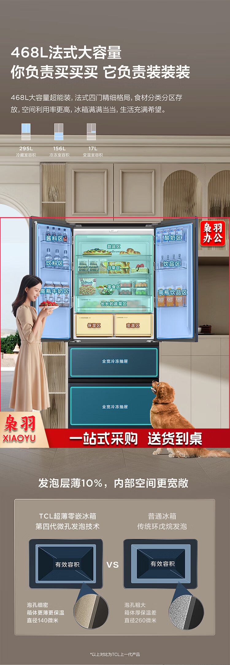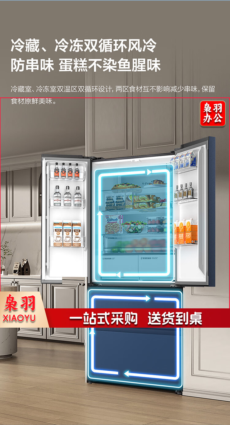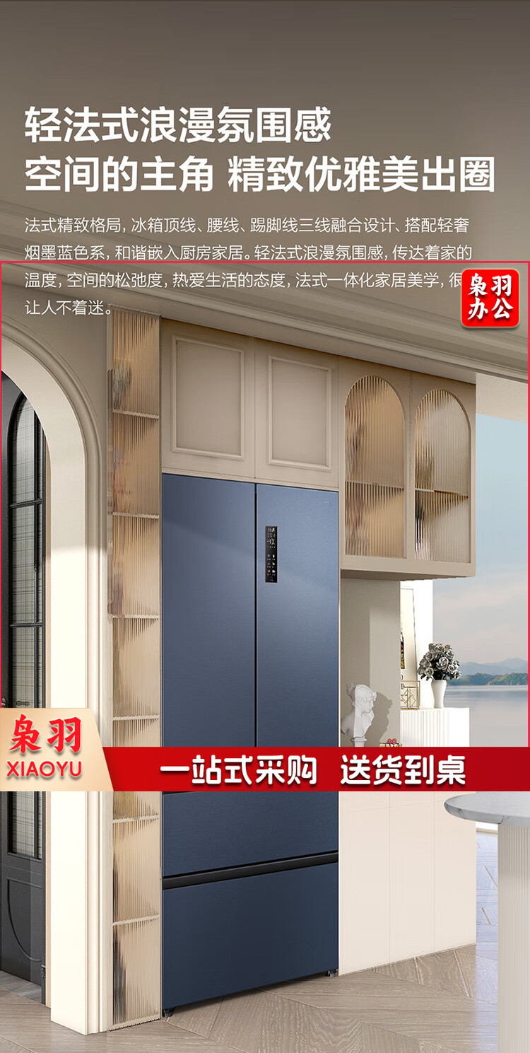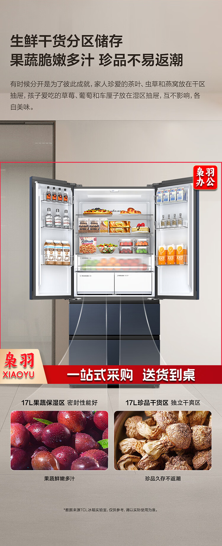 TCL 468升T9法式四门58cm超薄嵌入式冰箱杀菌除味双循环一级能效风冷无霜家用电冰箱R468T9-DQ