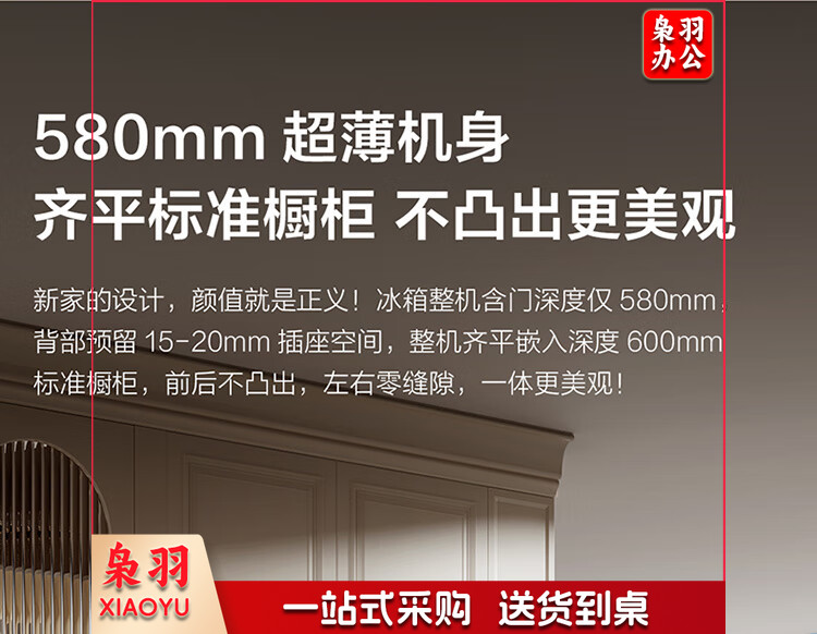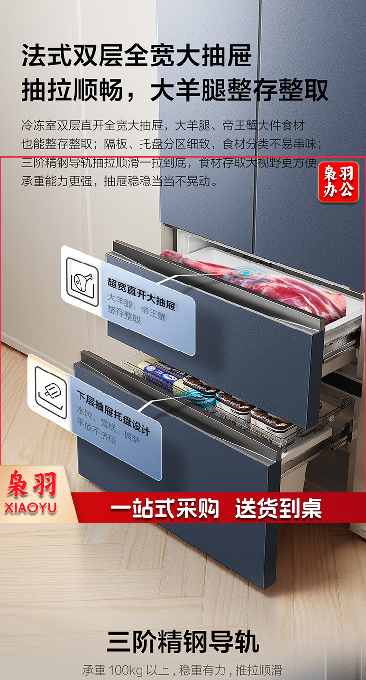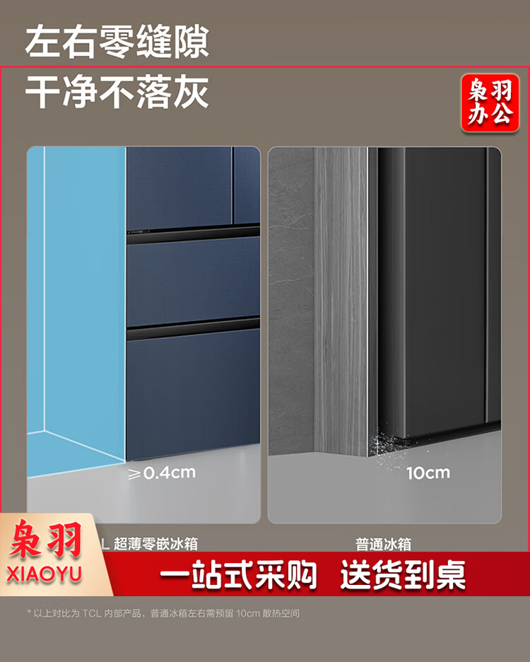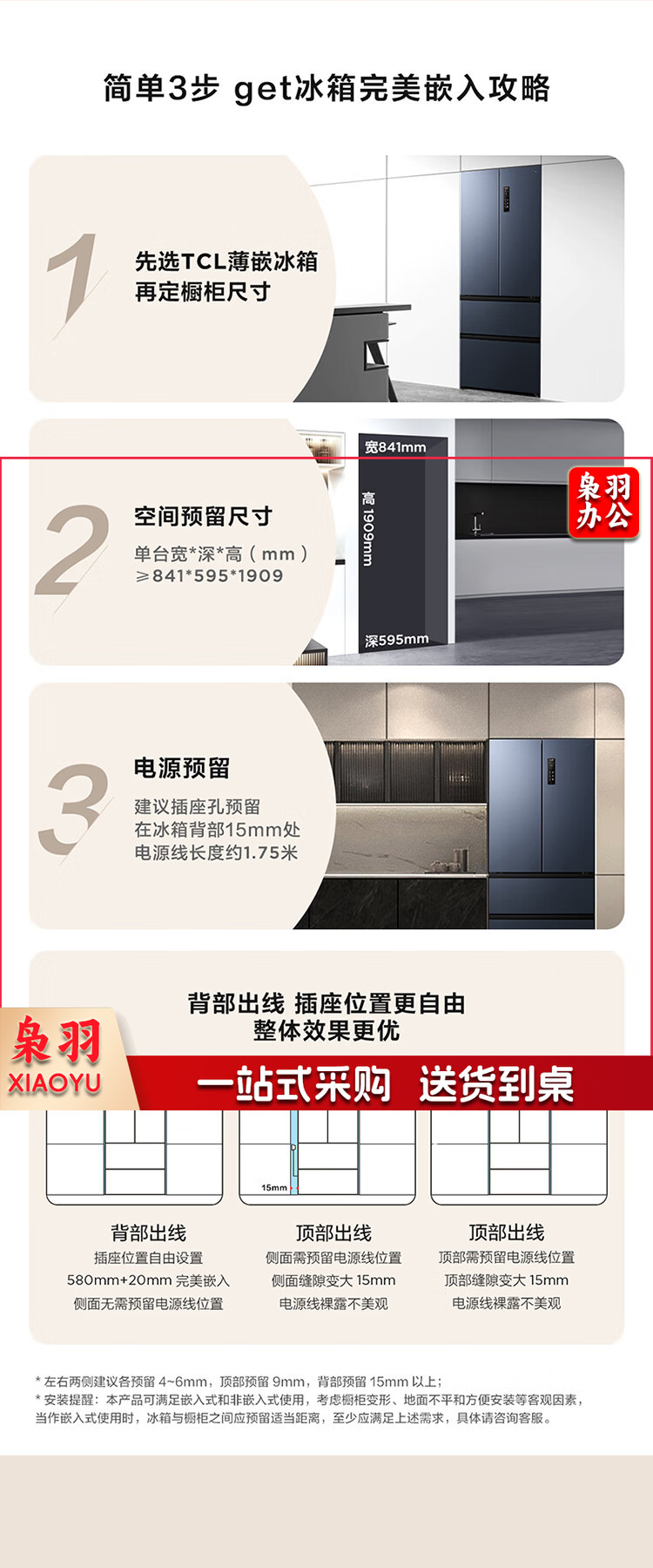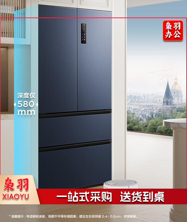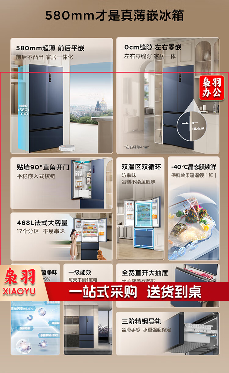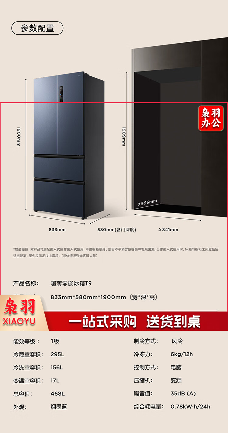TCL 468升T9法式四门58cm超薄嵌入式冰箱杀菌除味双循环一级能效风冷无霜家用电冰箱R468T9-DQ