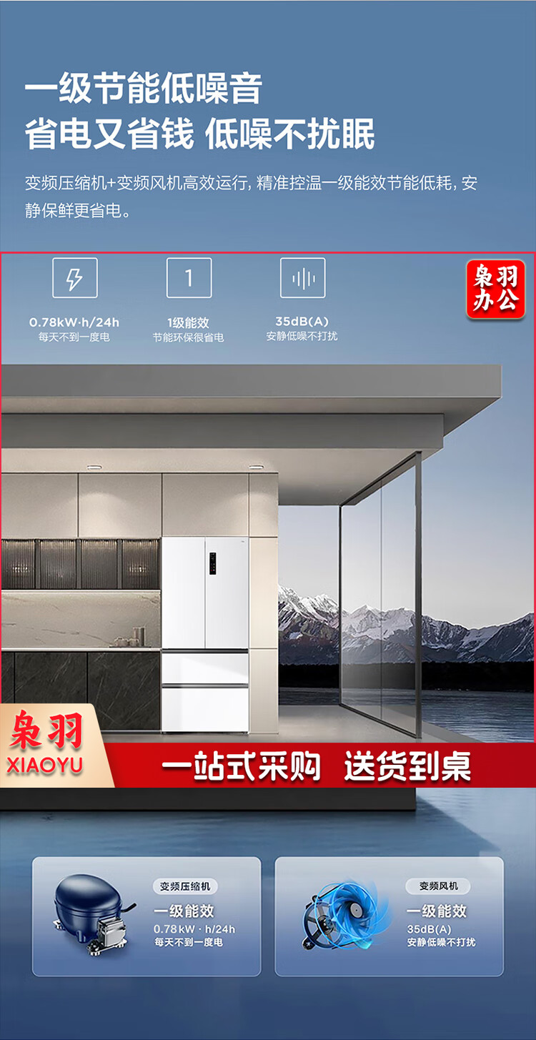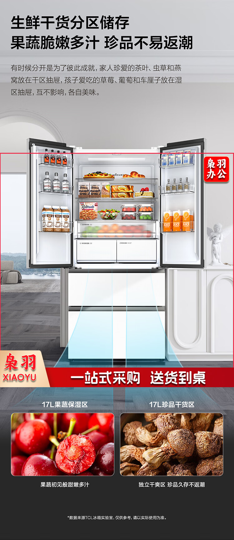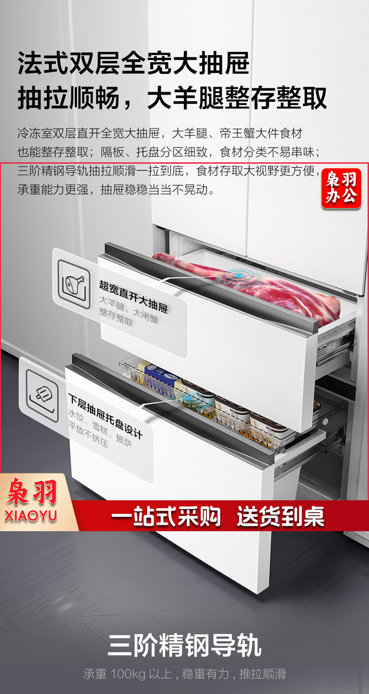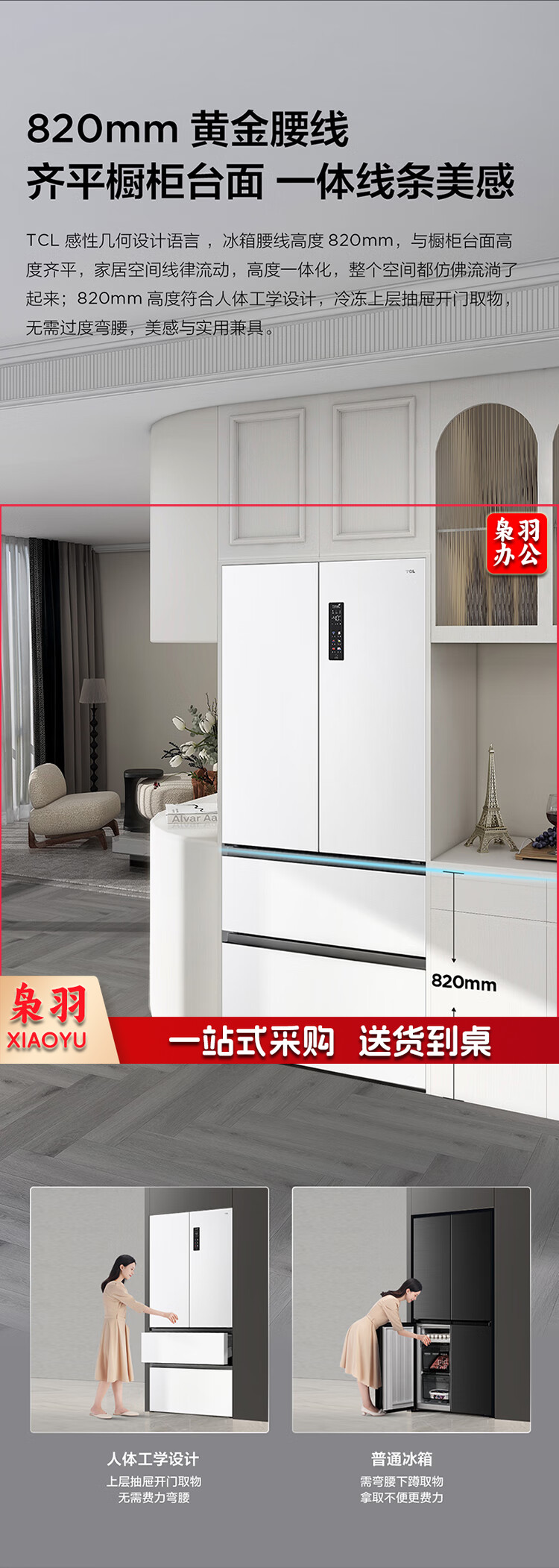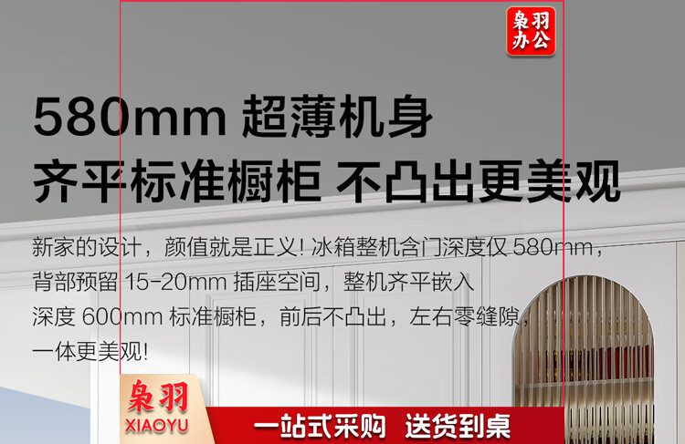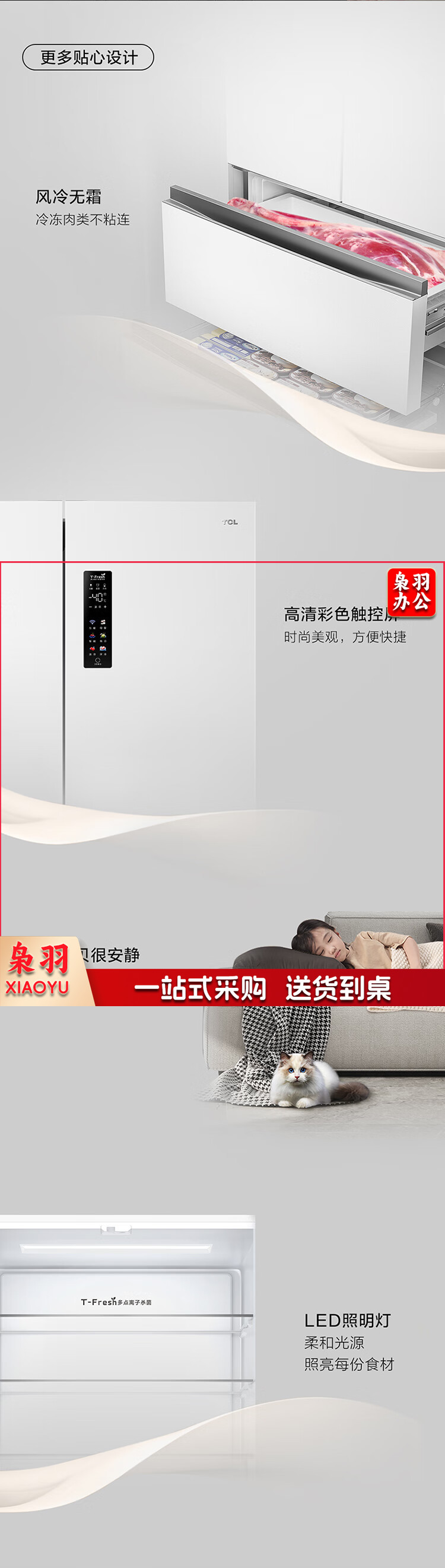 TCL 466升T9法式四开门58cm超薄零嵌入式白色风冷家用电冰箱杀菌除味一级能效大容量双循环R466T9-DQ