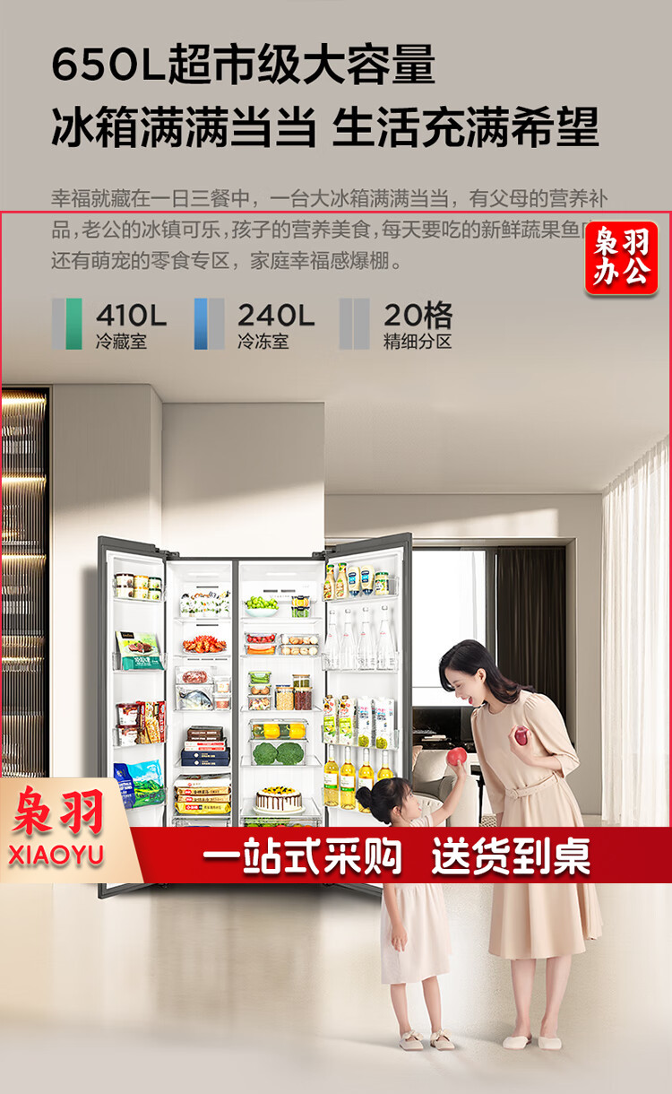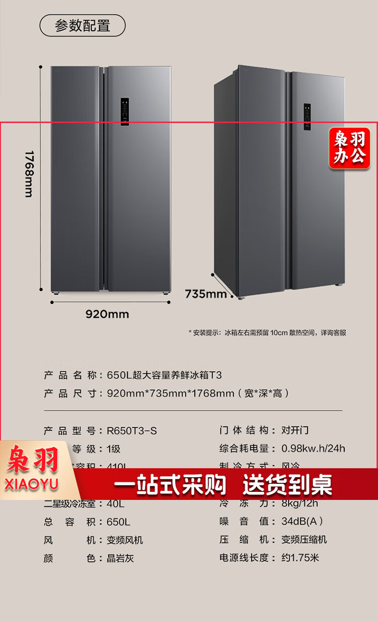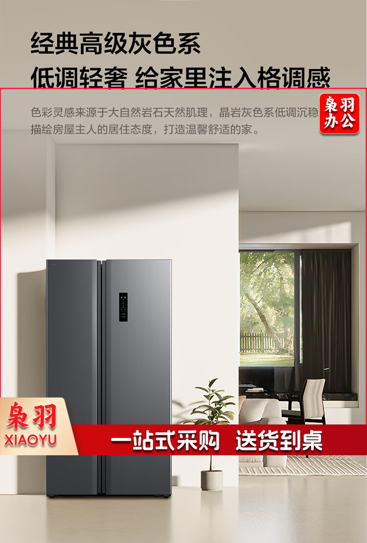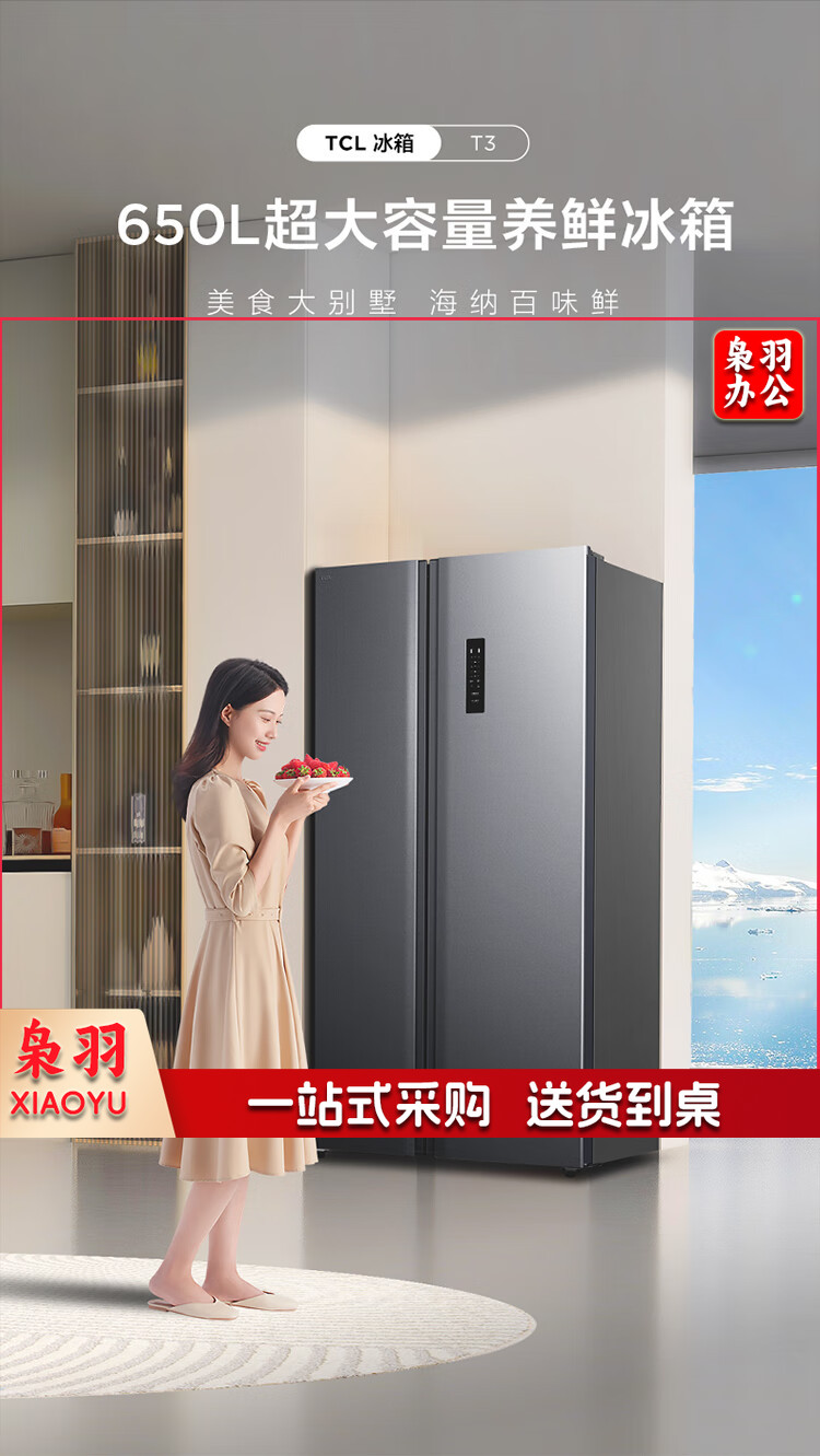 TCL 650升T3超大容量超薄冰箱对开双开门一级能效双循环风冷无霜一体双变频34分贝R650T3-S晶岩灰