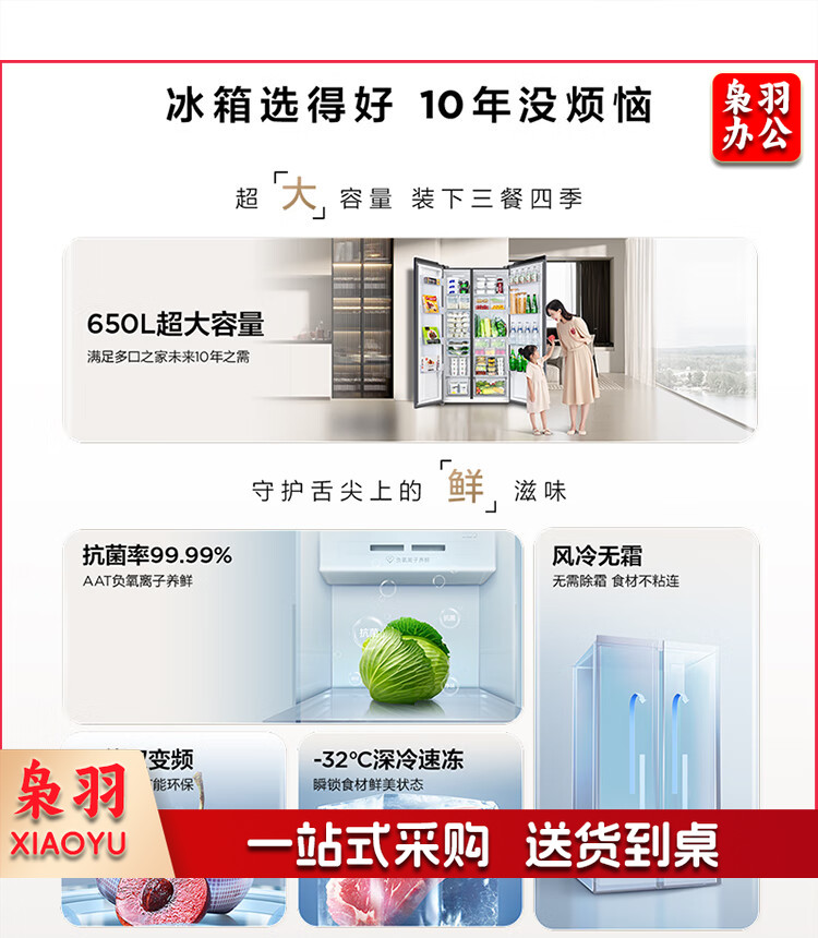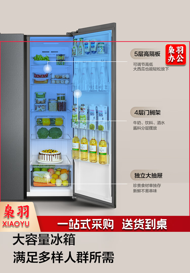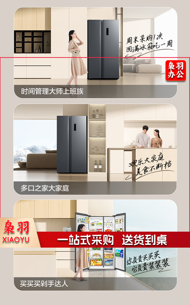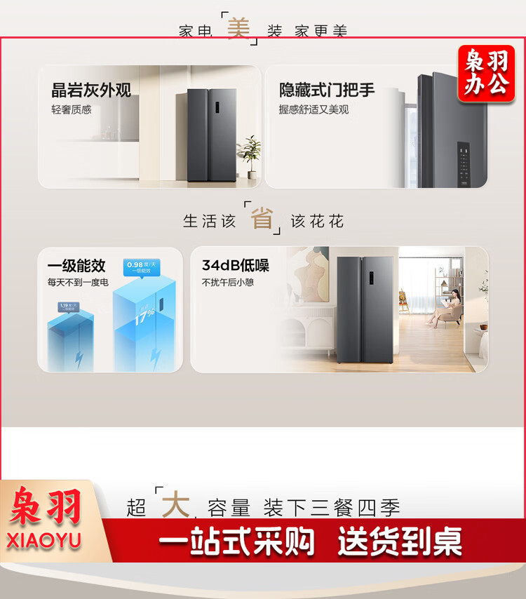 TCL 650升T3超大容量超薄冰箱对开双开门一级能效双循环风冷无霜一体双变频34分贝R650T3-S晶岩灰
