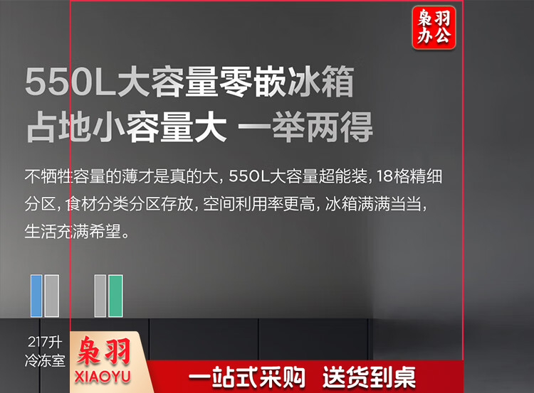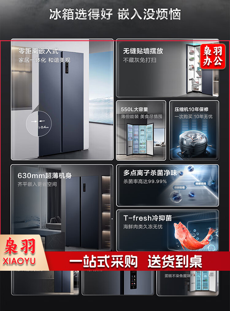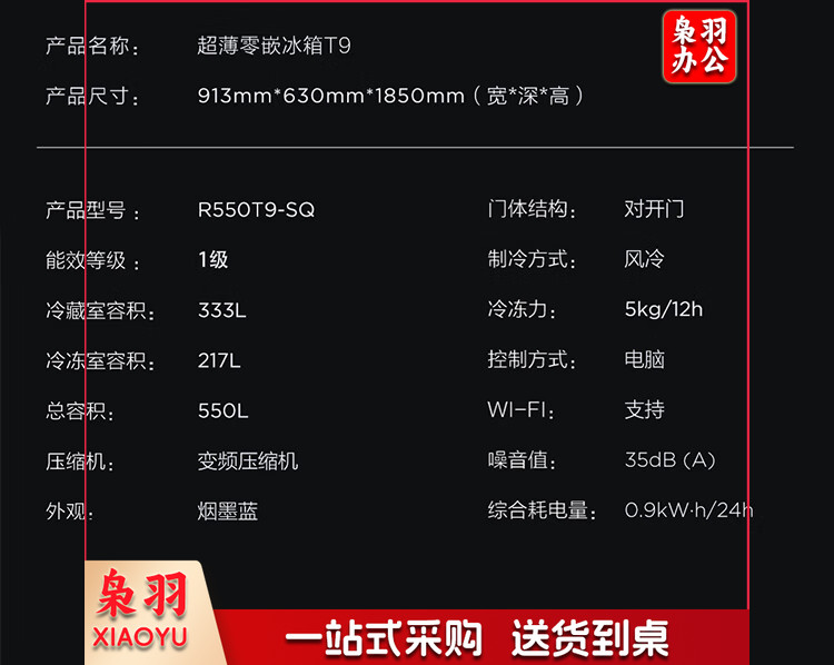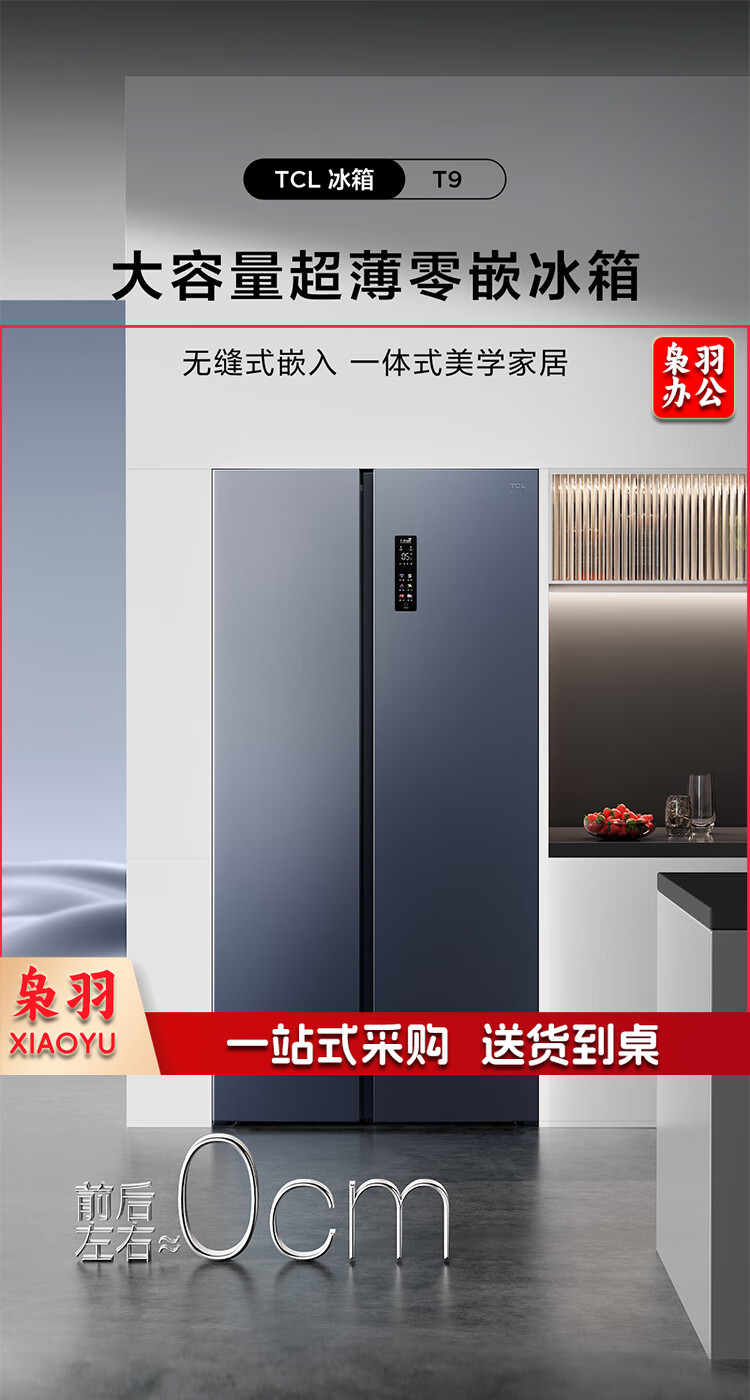 TCL 超薄零嵌系列550L大容量双开对开门冰箱超薄嵌入式家用冰箱一级变频底部散热双循环R550T9-SQ