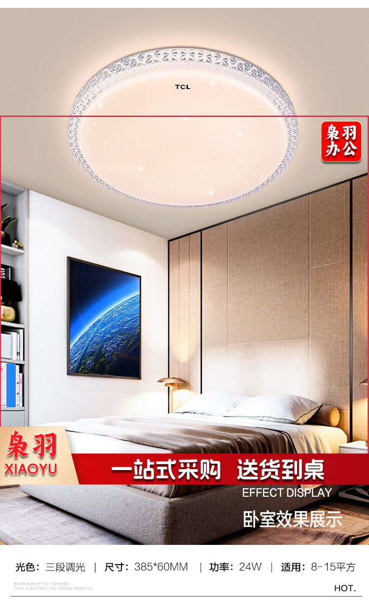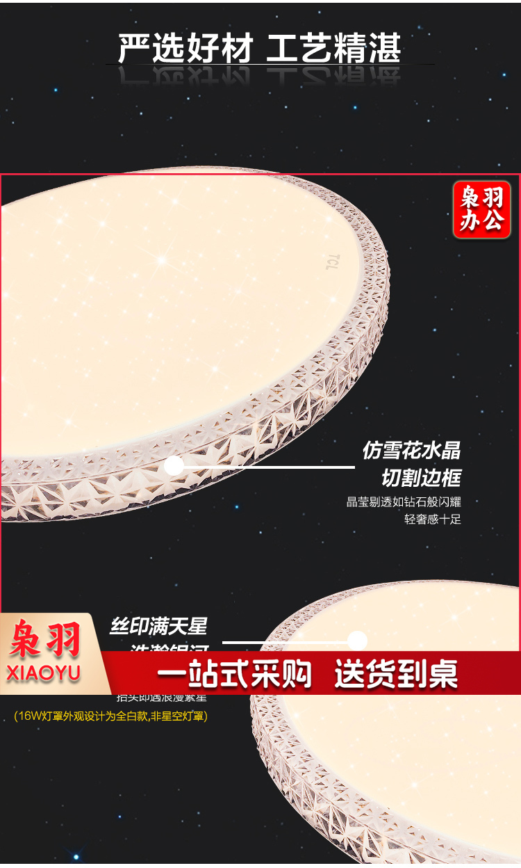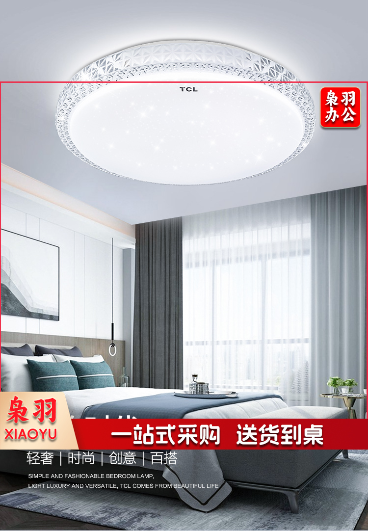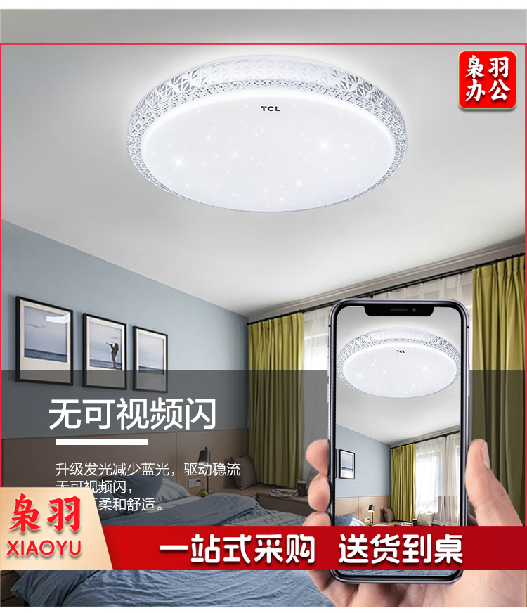 TCL照明 LED吸顶灯三色调光卧室灯圆形现代简约书房灯饰中山灯具