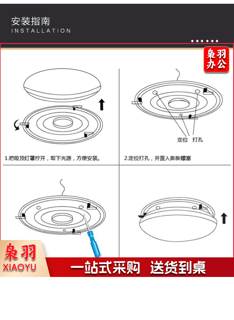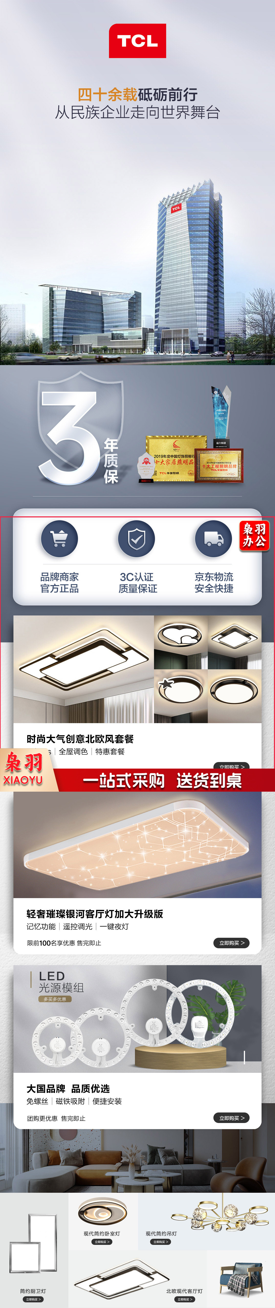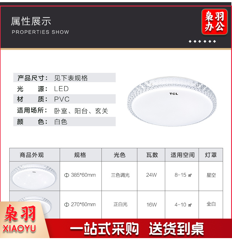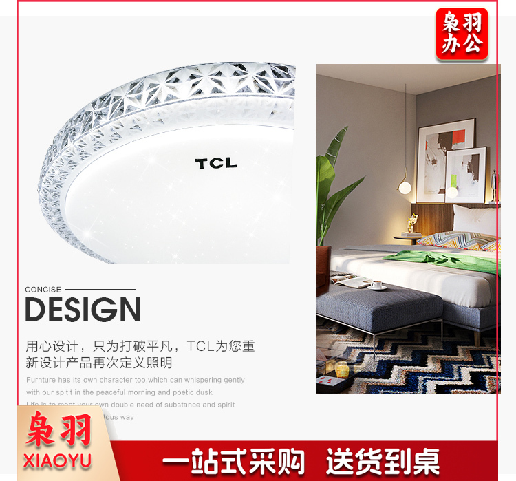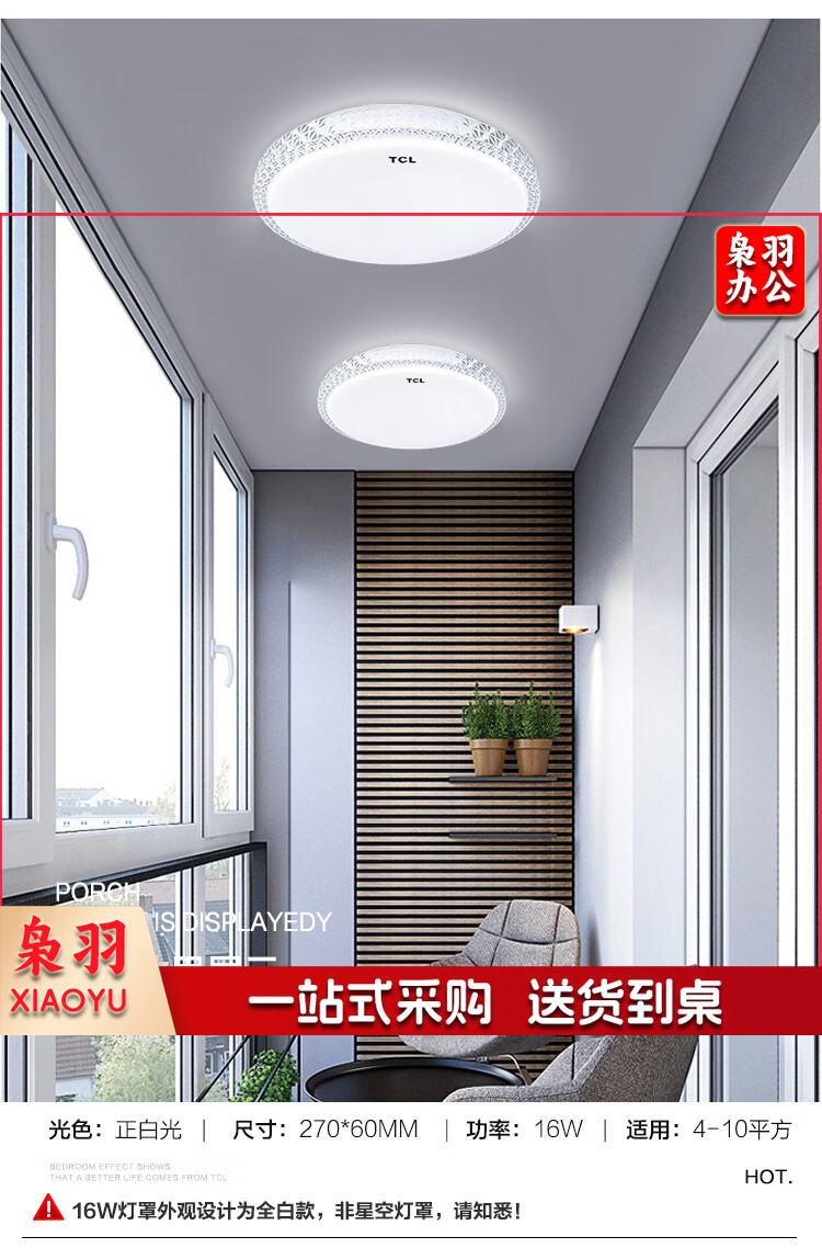 TCL照明 LED吸顶灯三色调光卧室灯圆形现代简约书房灯饰中山灯具