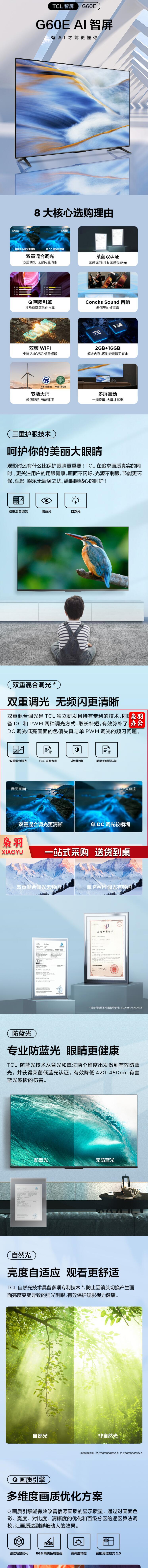 (下单前请咨询)TCL 65G60E 65英寸4K超高清电视 2+16GB 双频WIFI 远场语音支持方言