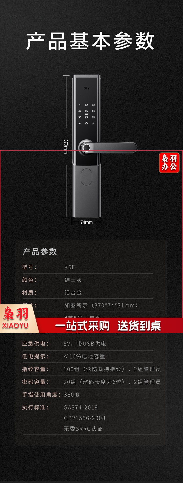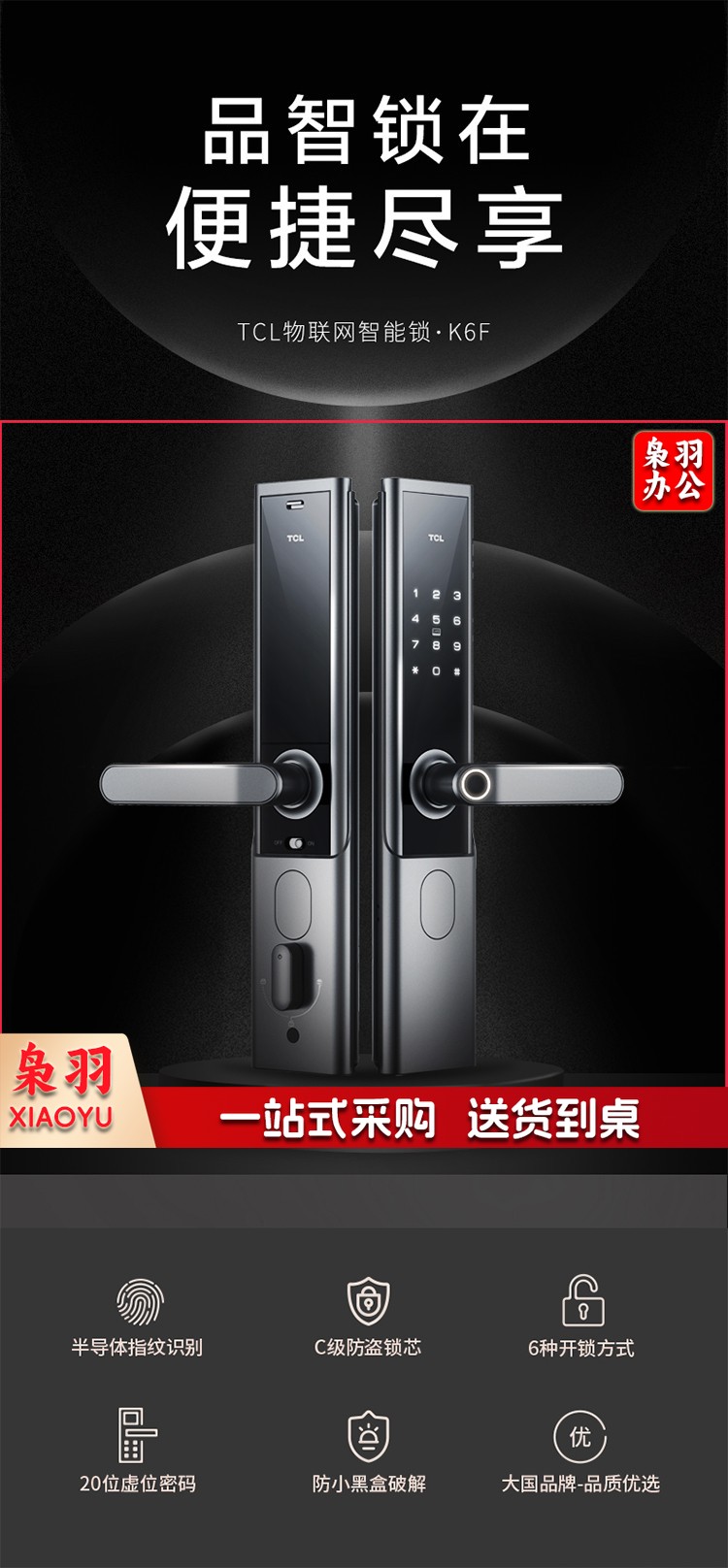 TCL 物联网智能门锁 K6F 半导体指纹识别/C级防盗锁芯/6种开锁方式 免费上门安装
