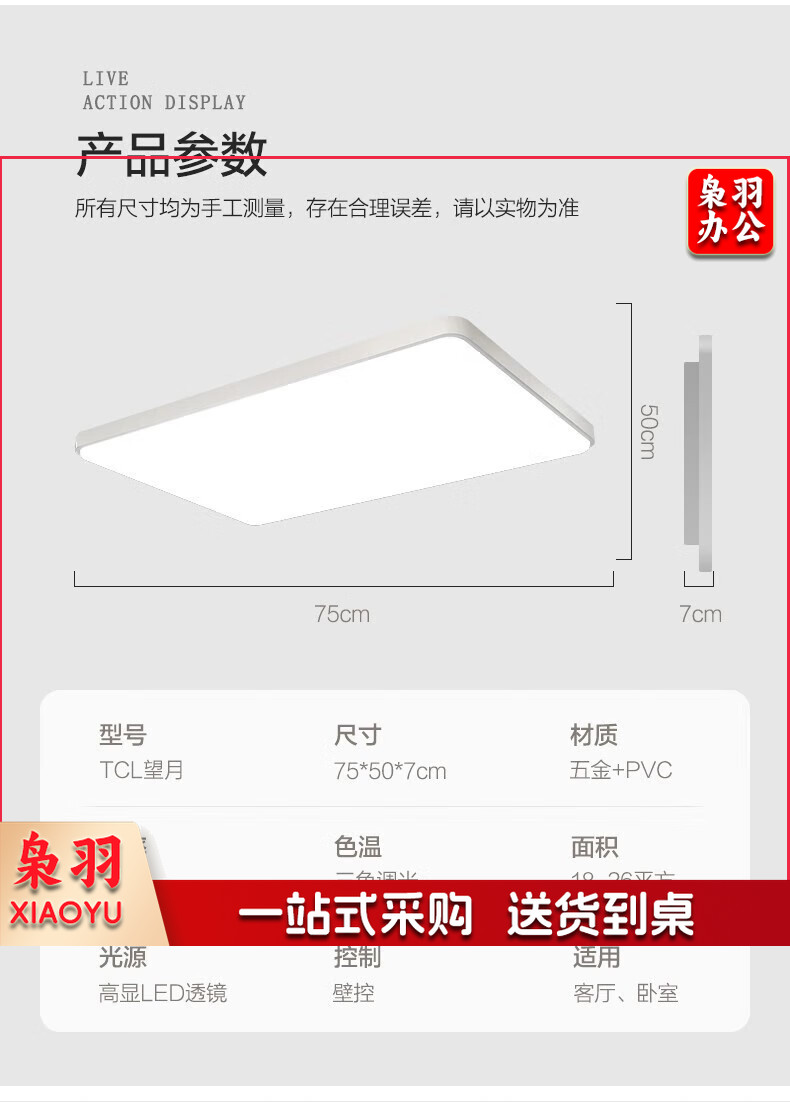 TCL照明客厅灯led吸顶灯简约客厅大灯餐厅卧室全屋三室两厅灯具套餐 特蕙96瓦三色80*50cm适20-25平