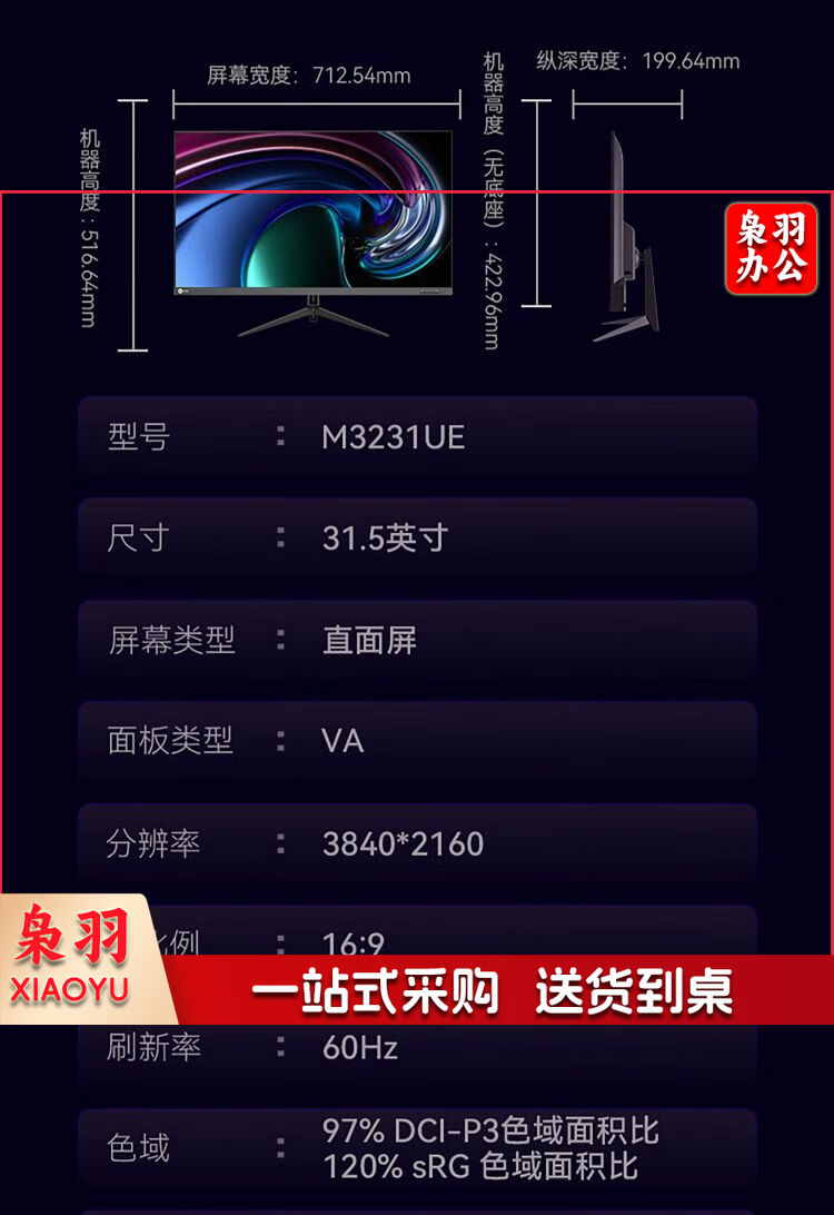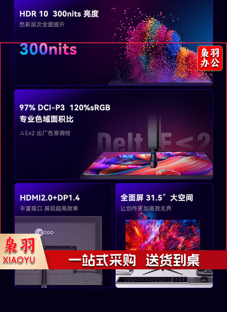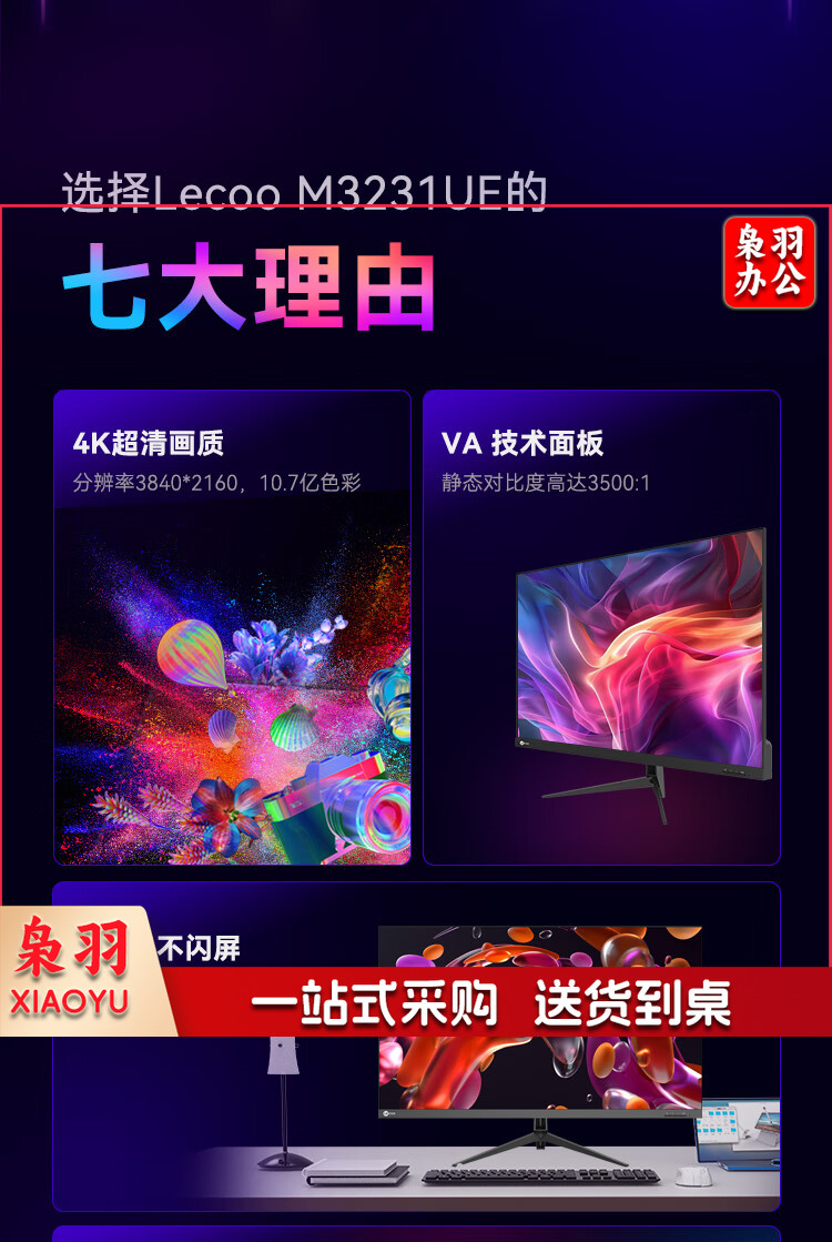 Lecoo联想来酷31.5英寸4K超清HDR 10Bit广色域低蓝光不闪屏办公显示器M3231UE
