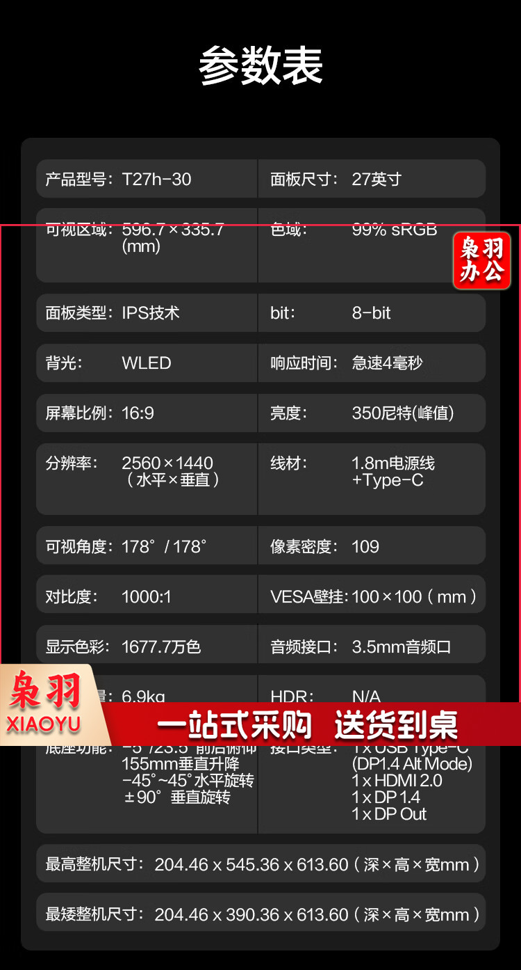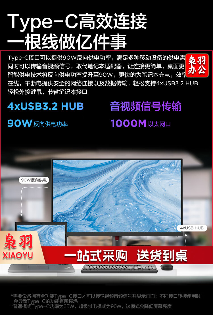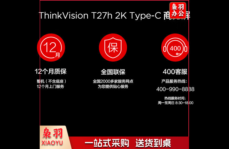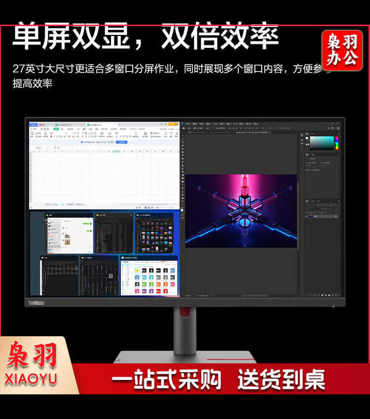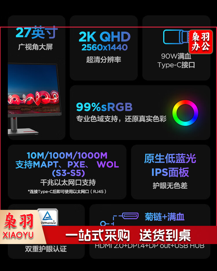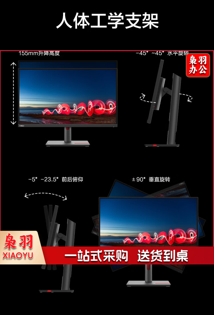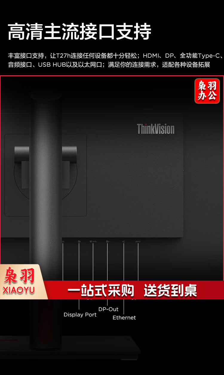 联想Thinkvision显示器高色域旋转支架设计绘图高清电脑显示器 27英寸/IPS技术/2K高清大屏T27h-30
