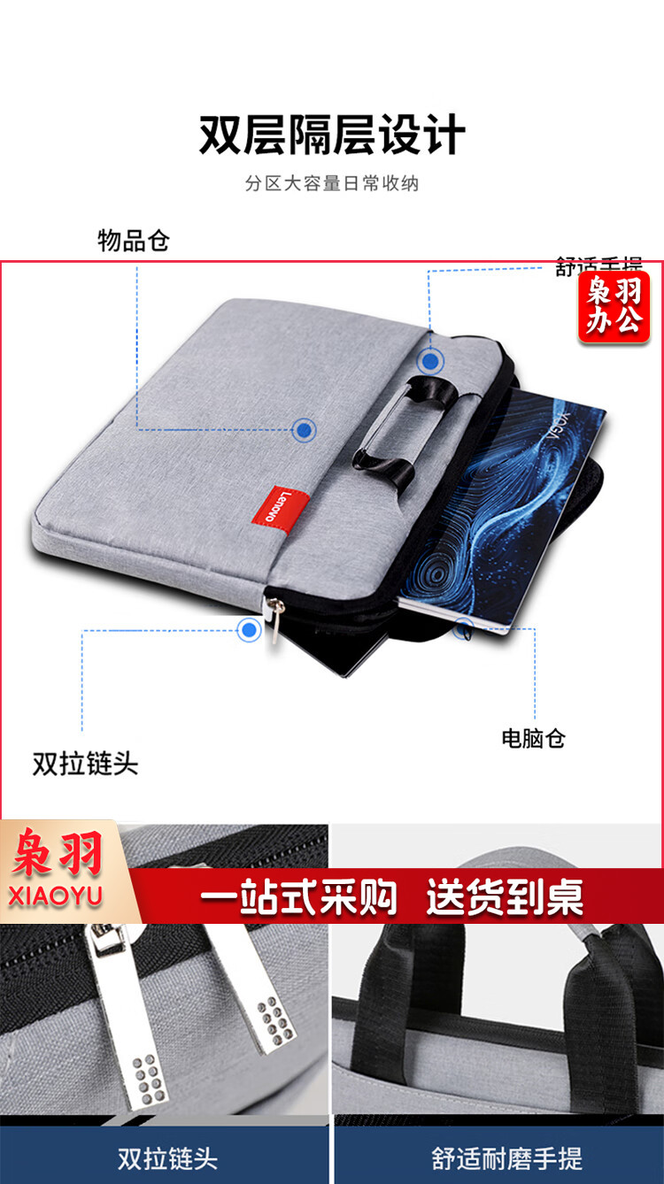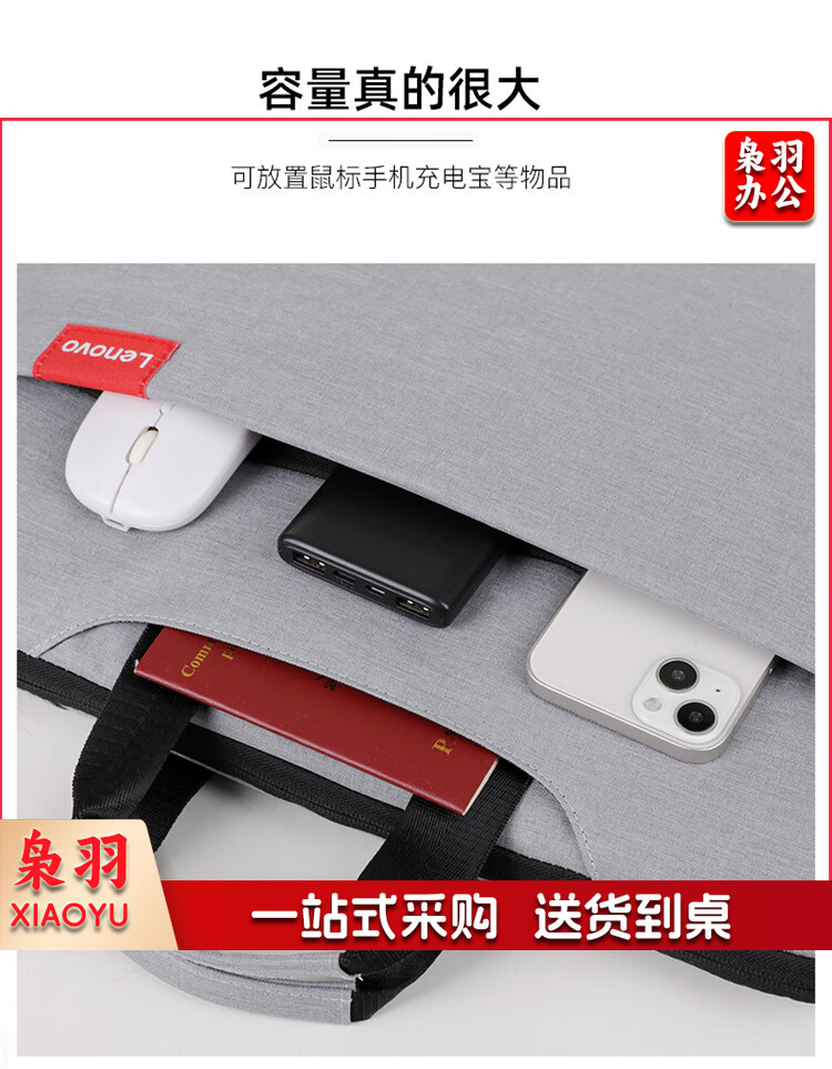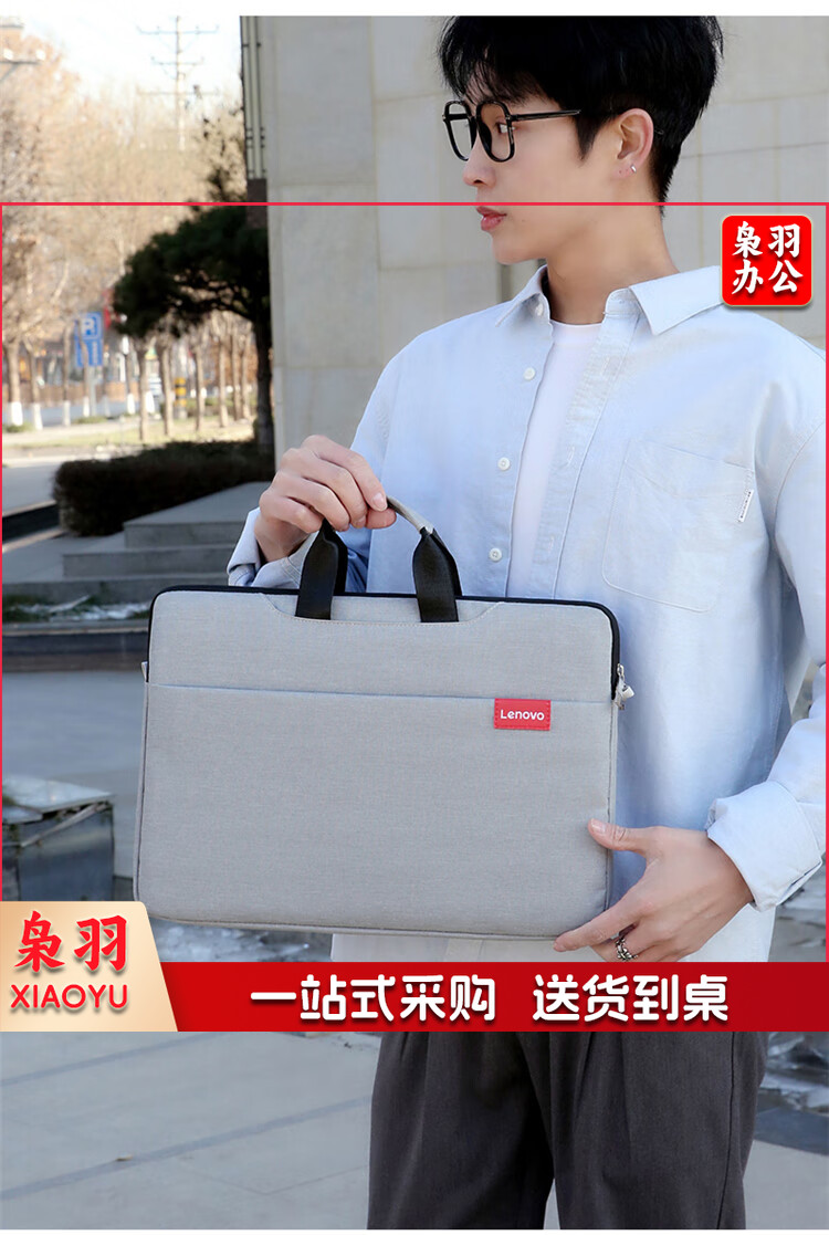 联想(Lenovo)笔记本电脑包16英寸公文包出差商务旅行包适用苹果华为小新拯救者防泼水手提包 加绒加厚款灰色
