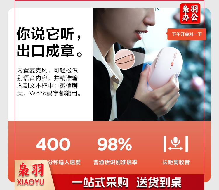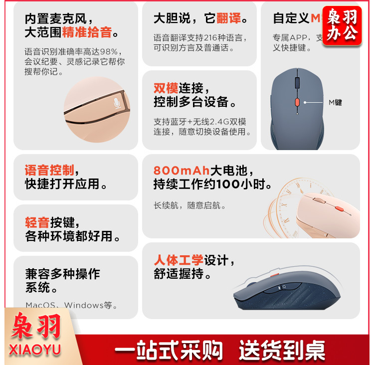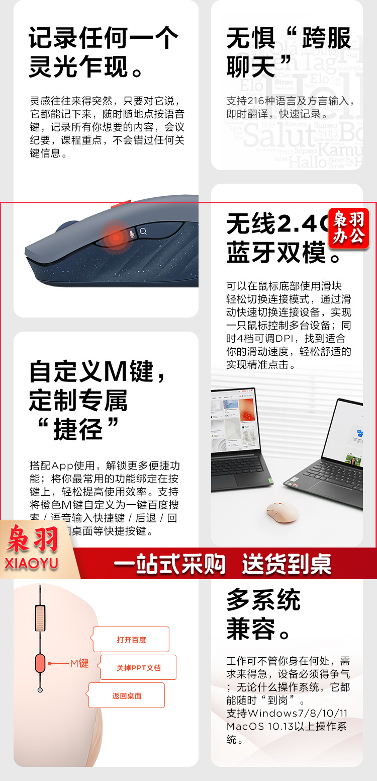 联想好小橙智能语音鼠标 无线蓝牙双模式 Type-C充电鼠标 轻音按键 语音输入打字翻译 好困蓝