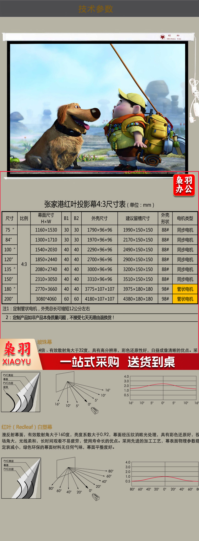 红叶(REDLEAF)150英寸4:3 电动玻珠投影幕 不含安装