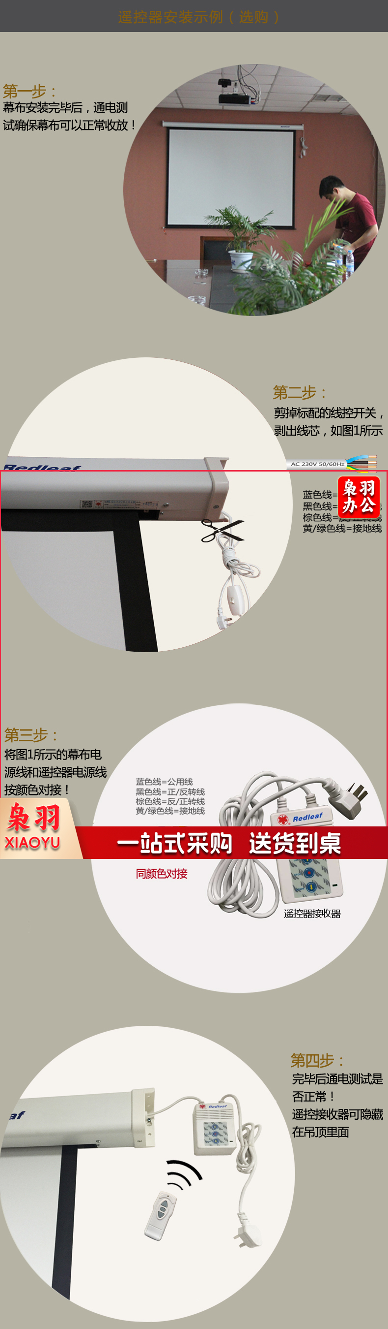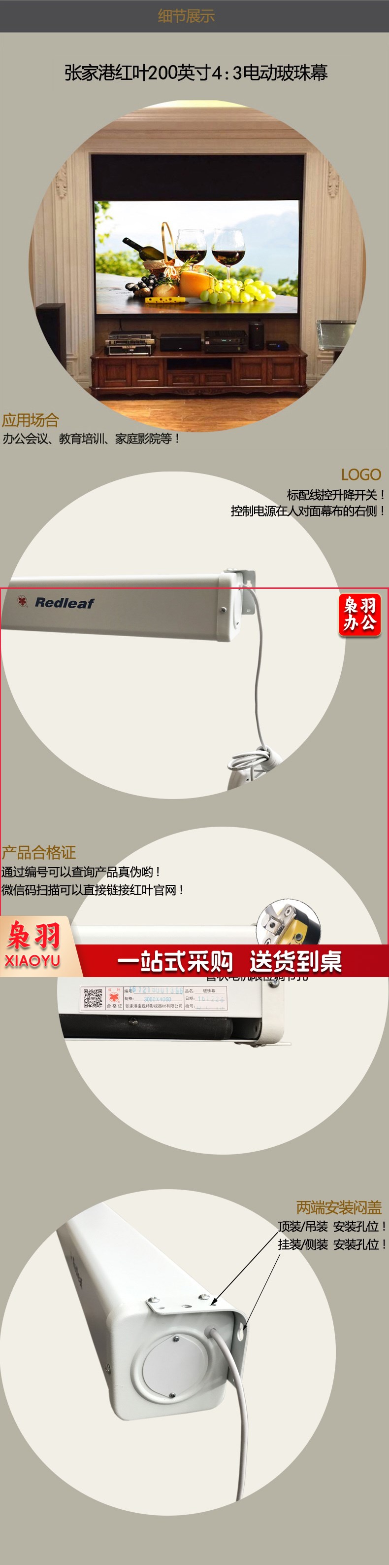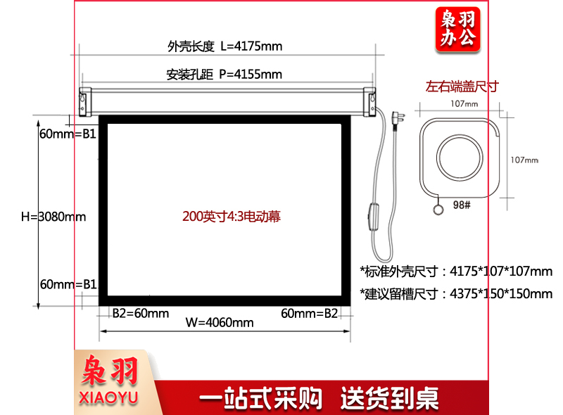 红叶(HONGYE)电动投影幕布200寸4:3白塑幕玻珠幕白玻纤高清幕布 4.06*3.05