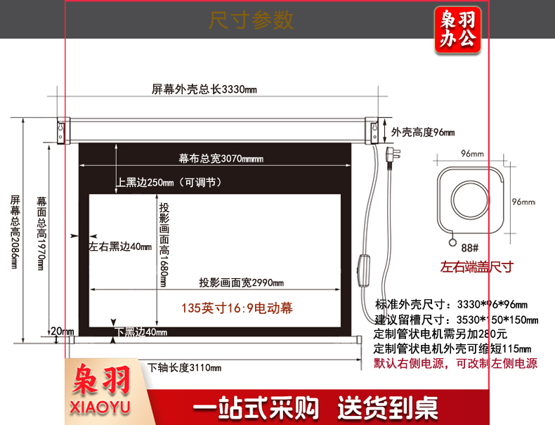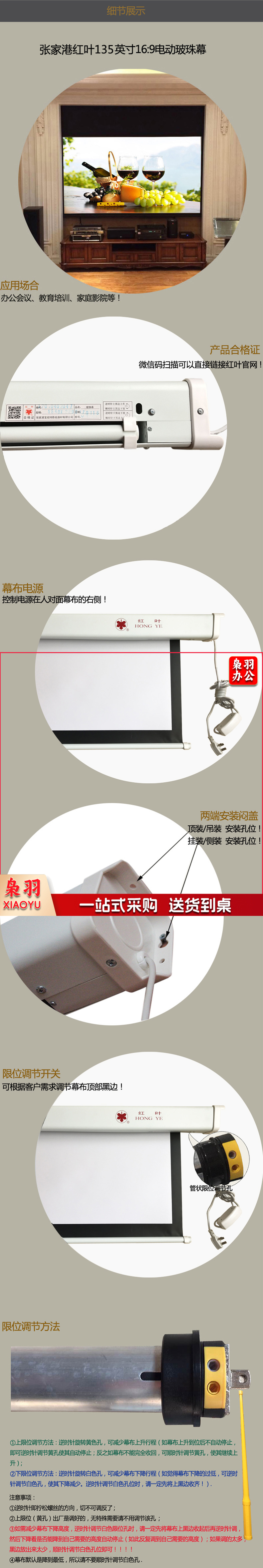 红叶(REDLEAF)135英寸16:9 电动玻珠投影幕 不含安装