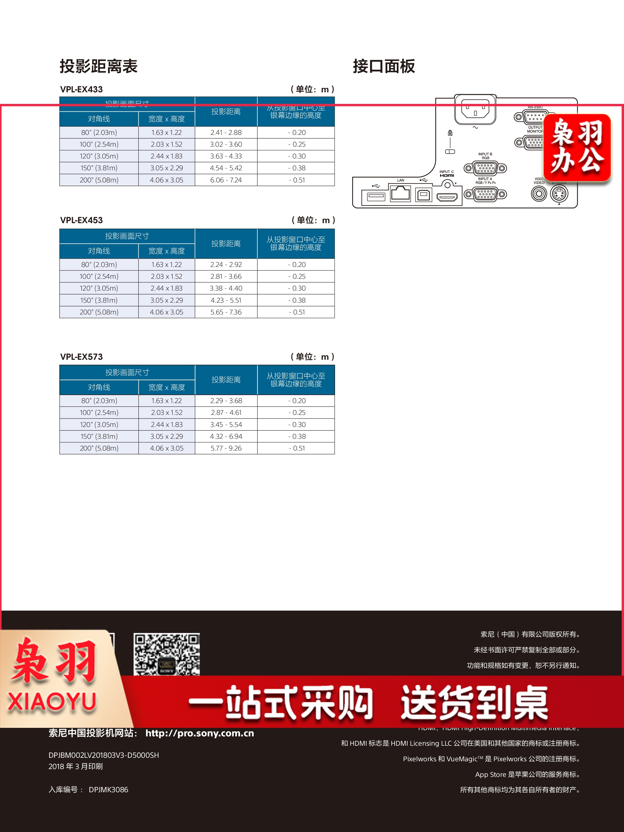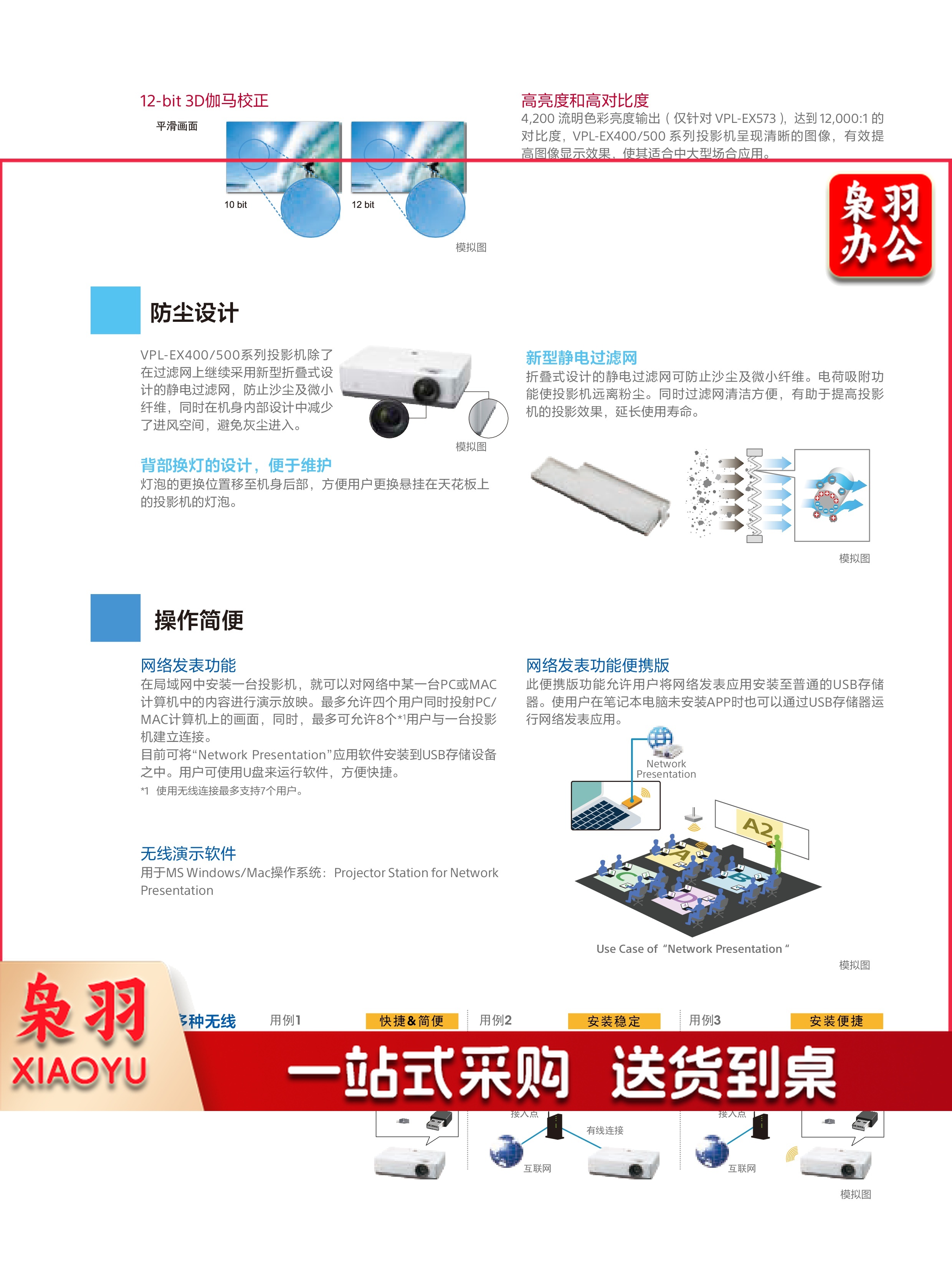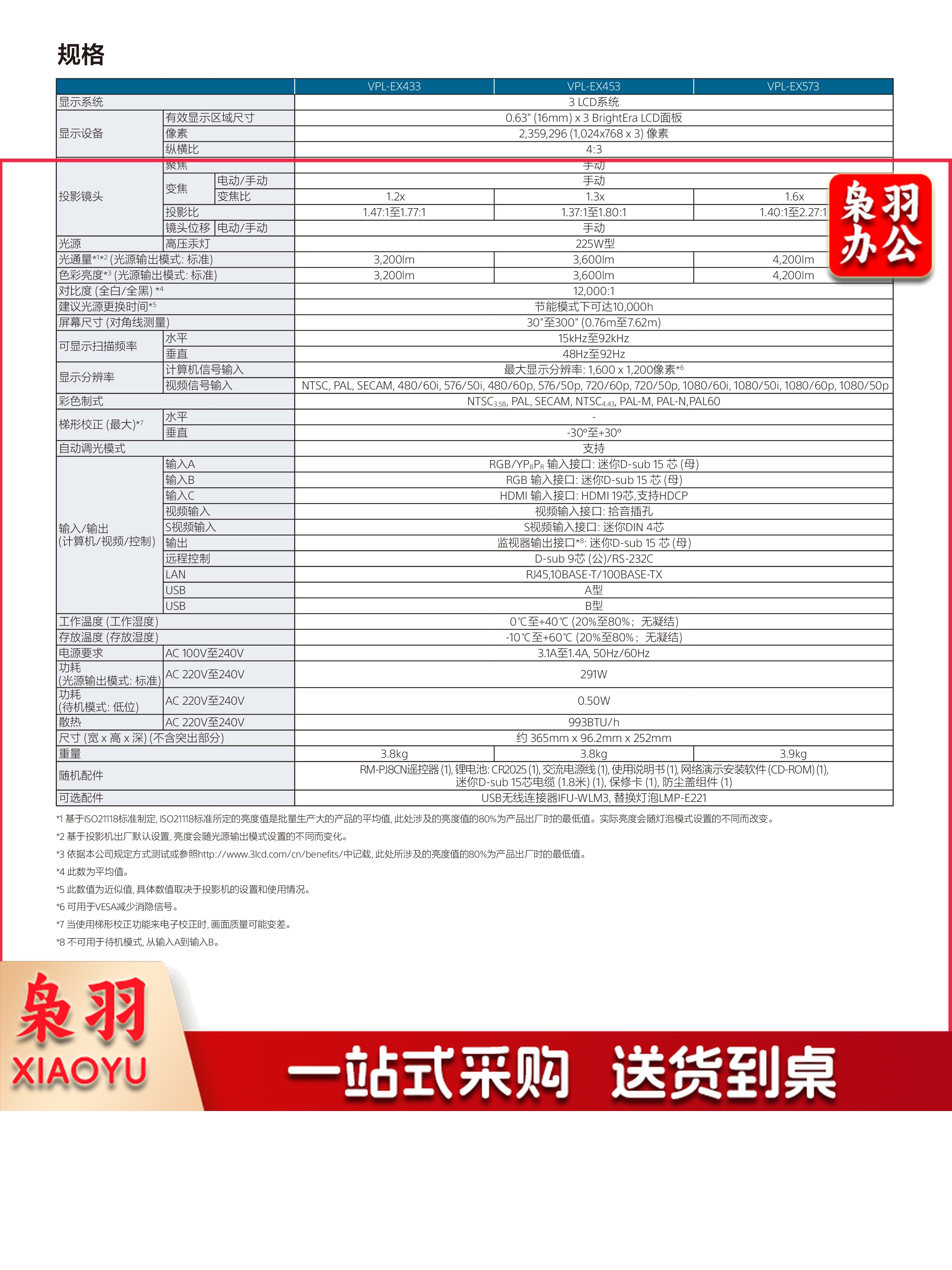 索尼 VPL-EX573 办公投影机 投影仪 白色
