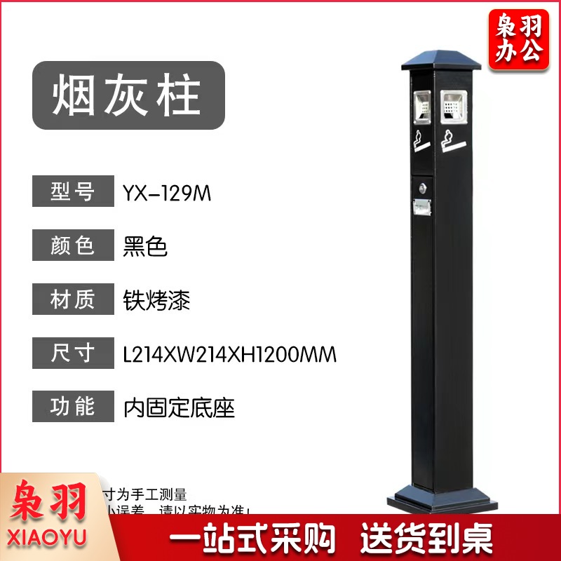 单位学校烟灰柱立式烟蒂柱立式烟灰桶烟蒂柱户外灭烟桶户外吸烟区烟灰缸室外落地灭烟垃圾桶 铁烤漆黑色 内固定底座 可定制标语LOGO