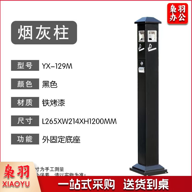 单位学校烟灰柱立式烟蒂柱立式烟灰桶烟蒂柱户外灭烟桶户外吸烟区烟灰缸室外落地灭烟垃圾桶 铁烤漆黑色 外固定底座 可定制标语LOGO