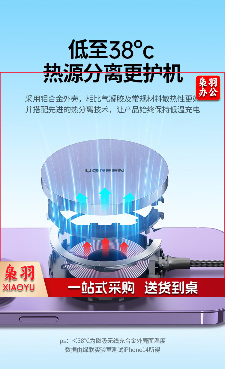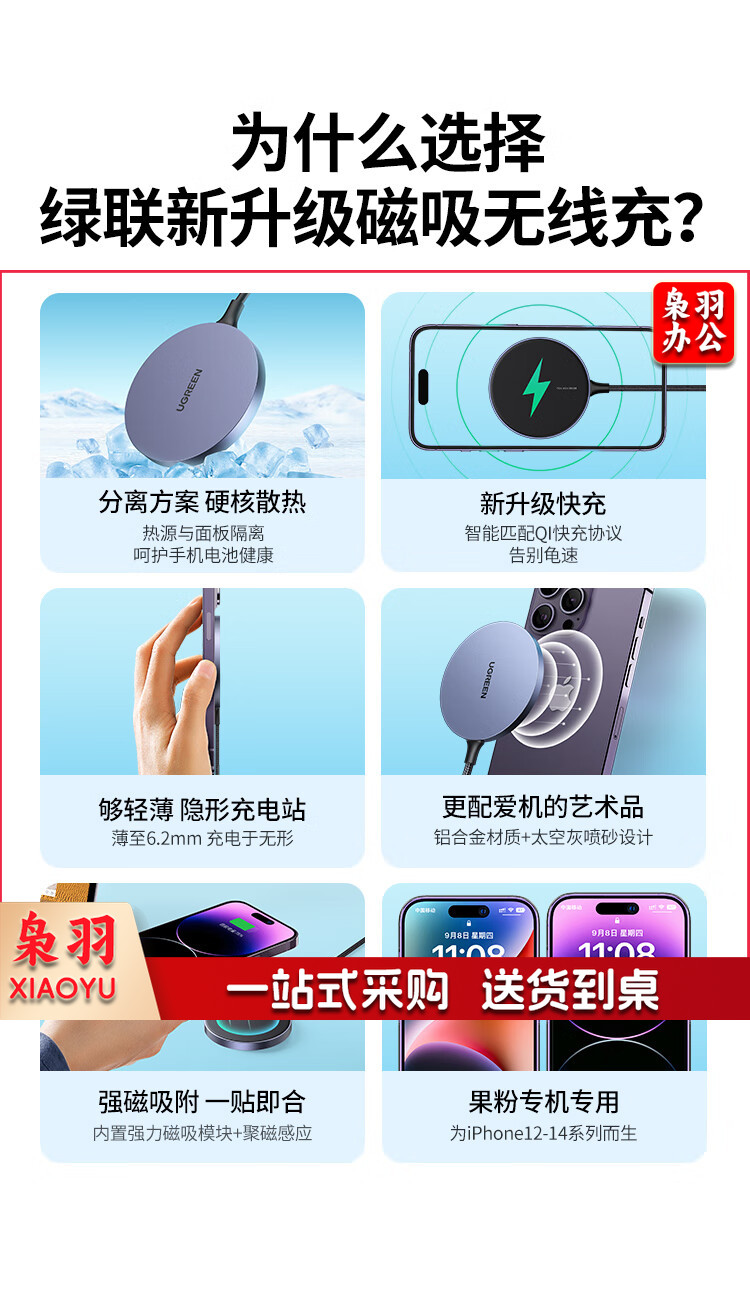 绿联 磁吸充电套装 MagSafe苹果磁吸无线充电宝+MagSafe磁吸无线充1.5米 绿联30233+15086
