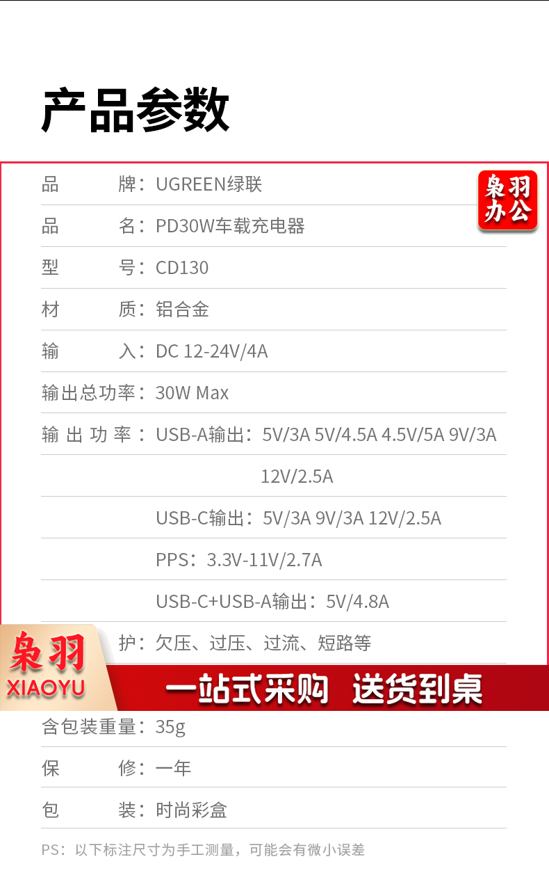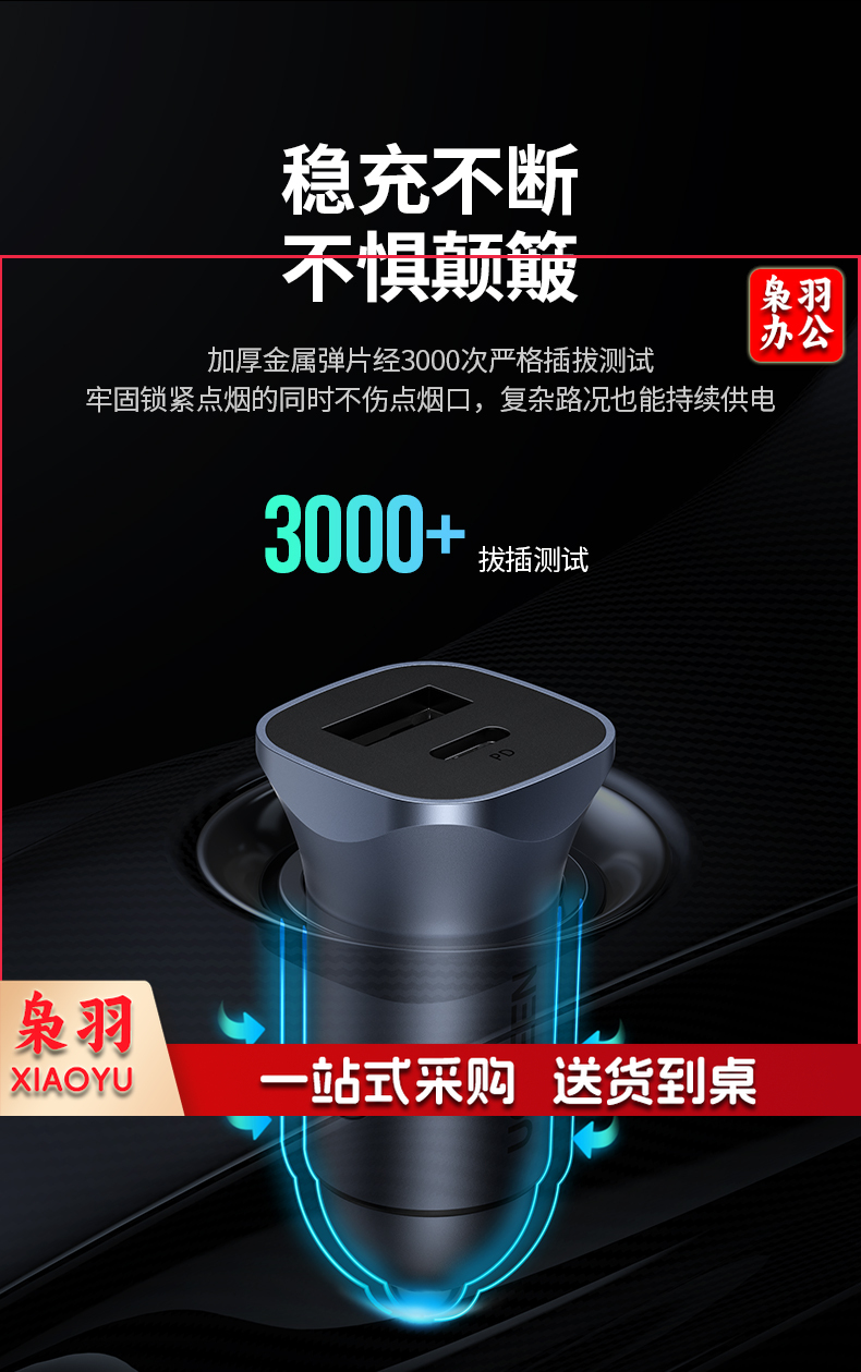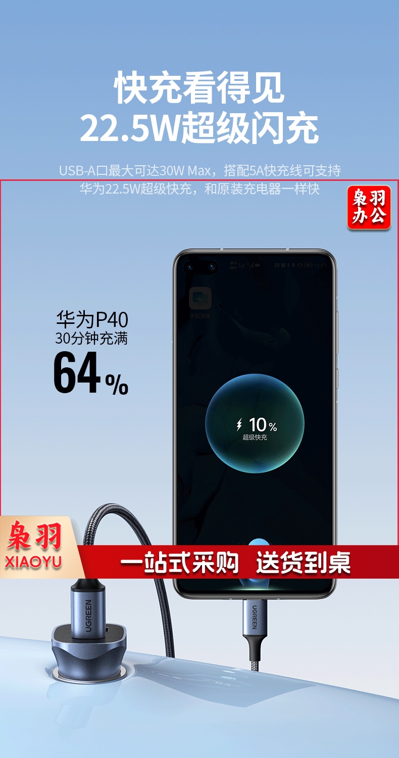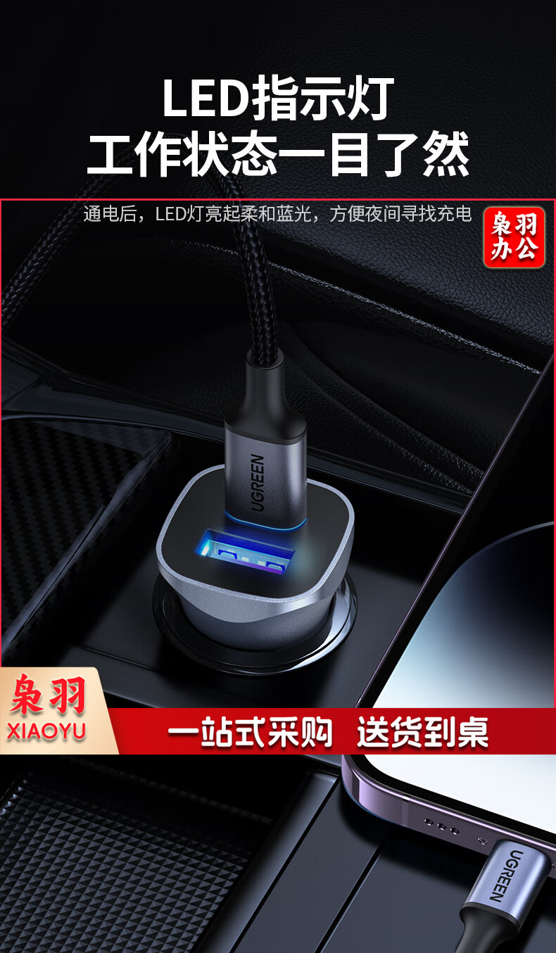 绿联 车载充电器 苹果PD30W快充头一拖二汽车点烟器充电器 40858