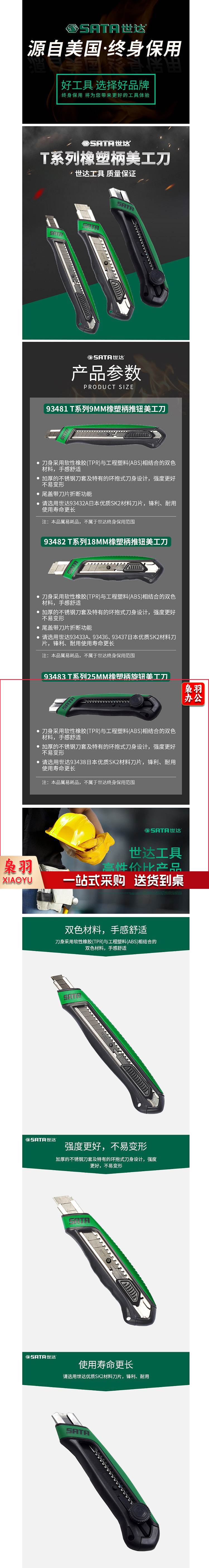 世达93481T系列9MM橡塑柄推钮美工刀(把)