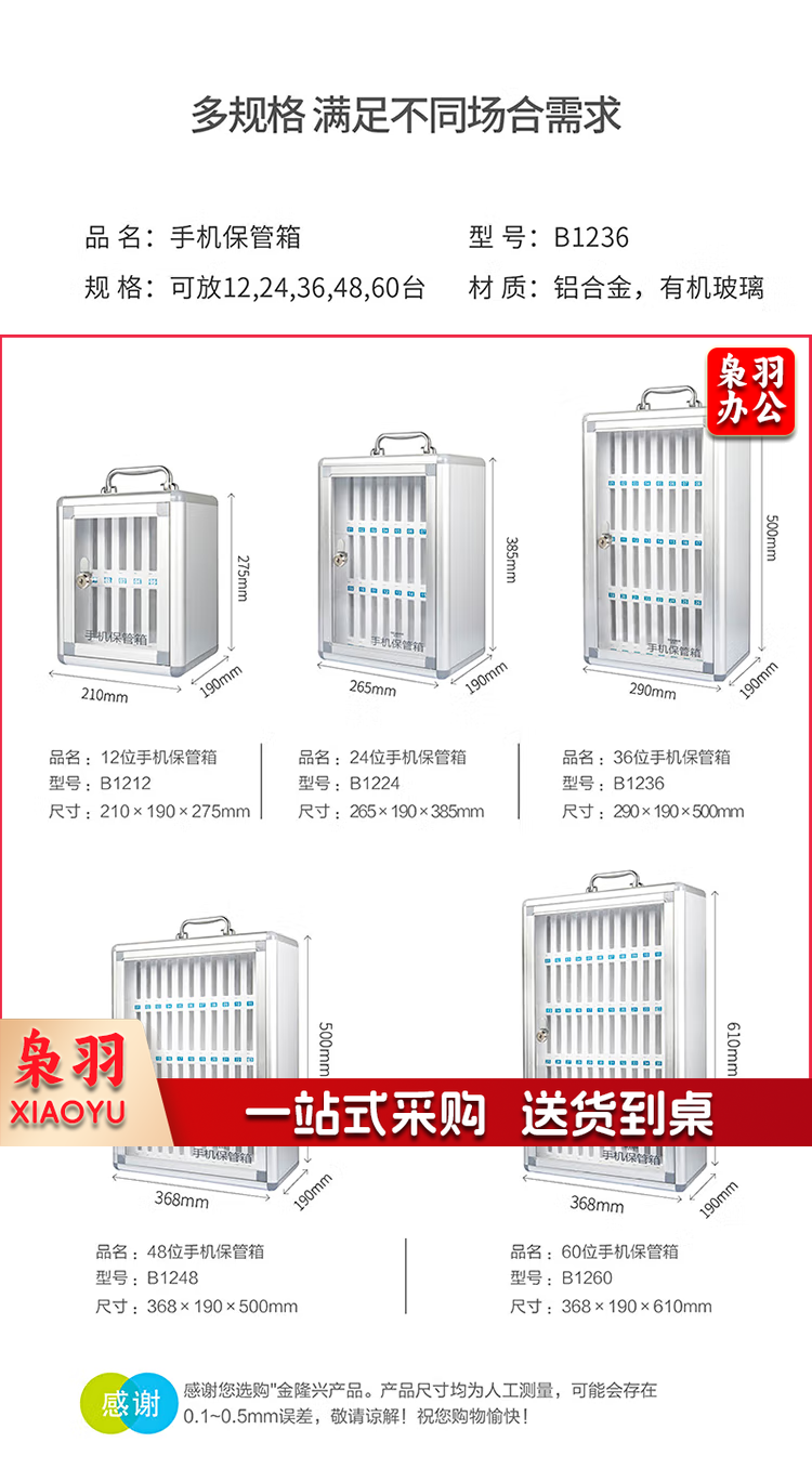 金隆兴(glosen) 手机保管盒 车间手机存放盒 学校学生办公会议存放盒 铝合金带锁手机收纳盒 36位