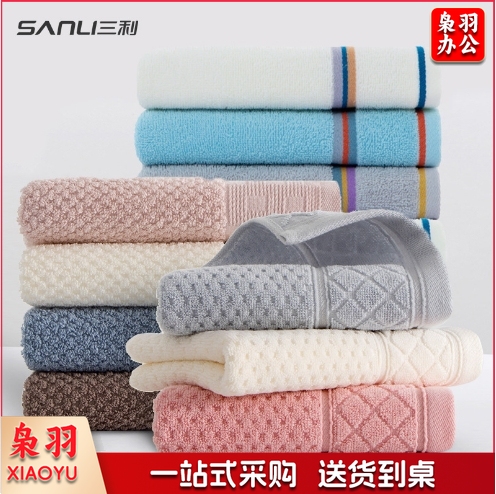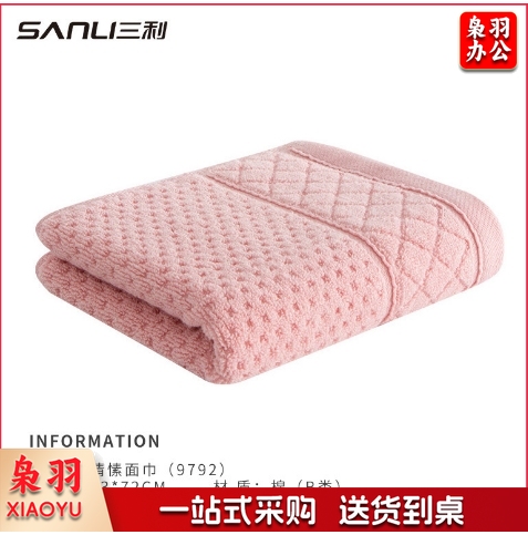 三利毛巾纯棉素色面巾蜂窝缎档大毛巾成人纯棉毛巾商超劳保