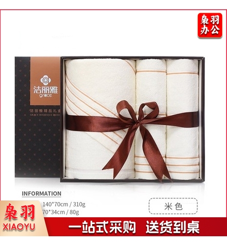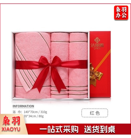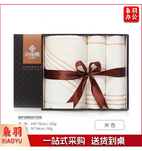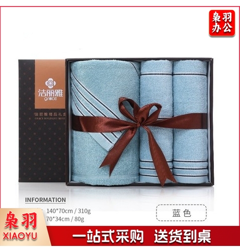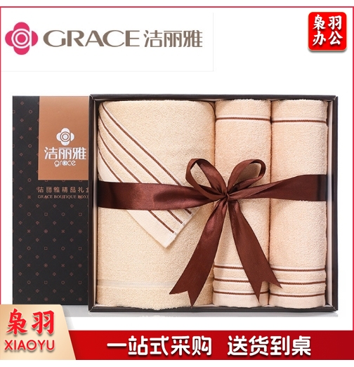洁丽雅7378三件套礼盒 纯棉浴巾毛巾礼盒刺绣logo 洁丽雅浴巾礼盒